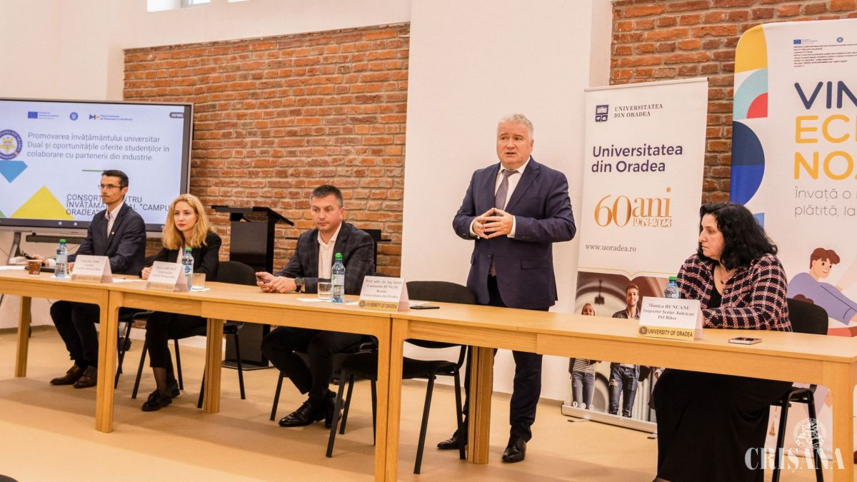 Reprezentantul Universității din Oradea în proiectul „Consorțiu pentru învățământ dual Campus Oradea”, conf. univ. dr. Alin Pop, prodecanul Facultății de Inginerie Managerială și Tehnologică, a subliniat că evenimentul își propune să fie „un dialog, între parteneri, cu privire la modul în care se îmbină pregătirea academică cu practica în mediul real de muncă”. Referindu-se la proiectul Campusului Dual Oradea, Horea Abrudan, vicepreședinte al Consiliului Județean Bihor, a precizat că această instituție de învățământ reflectă viziunea administrației cu privire la dezvoltarea economică a județului, care își propune să ducă locurile de muncă mai aproape de cei care lucrează.