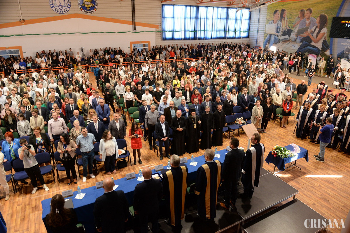 Atmosferă frumoasă luni, la deschiderea noului an universitar. Sala polivalentă a fost plină, iar discursurile au atins probleme importante legate de viitorul Universității din Oradea, de dezvoltarea în strânsă legătură cu orașul, dar și de educarea noii generații și transformarea ei în piloni ai unei societăți mai bune.