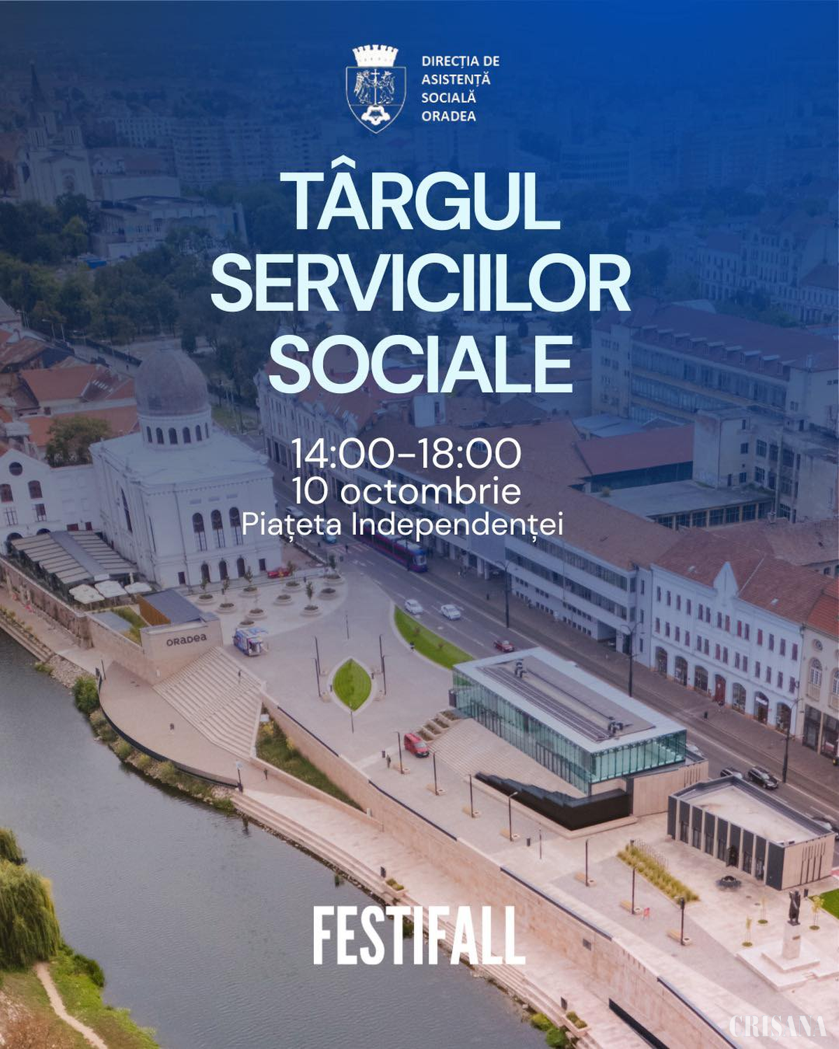 În Piațeta Independenței, în cadrul Oradea FestiFall, vineri, 10 octombrie, între orele 14.00-18.00, va avea loc Târgul Serviciilor Sociale.