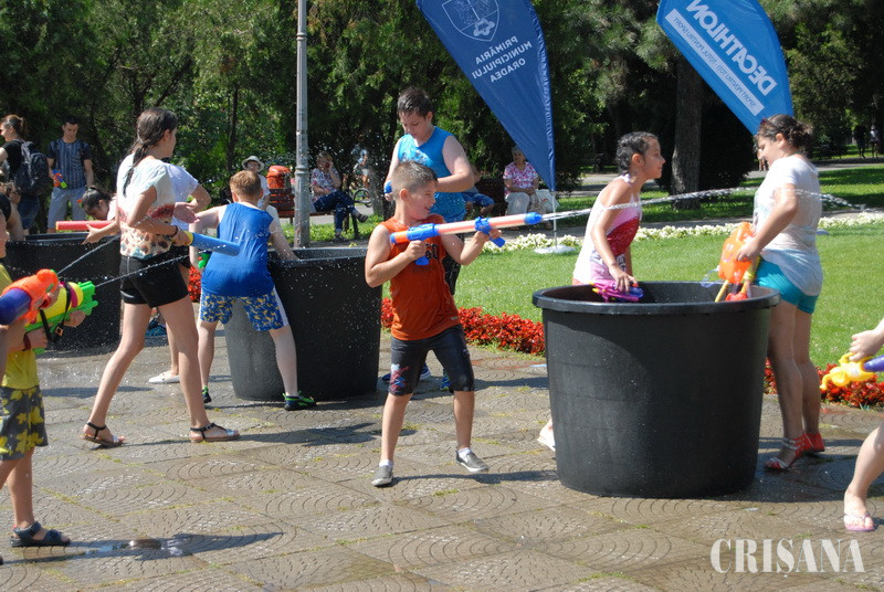 Platoul din Parcul 1 Decembrie din Oradea a fost, sâmbătă, scena unei bătăi cu apă la care au luat parte zeci de orădeni, majoritatea copii. „Înarmaţi” cu pistoale, baloane sau pungi cu apă, participanţii au profitat de ocazie şi s-au răcorit în cadrul Water Splash Fest 2016.