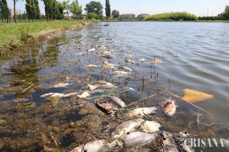 O documentare făcută miercuri, 28 iunie, la fața locului, ne-a oferit imaginea unui lac suprapopulat, cu pești de toate speciile, cel mai spectaculos fiind crapul Koi, care, la maturitate sexuală, ajunge la vârsta de 18-36 de luni. Este vorba despre un peşte rezistent, dar care are și câteva pretenţii: habitat de lux şi apă curată, de calitate. În contrast cu imaginea pe care o oferă acești pești spectaculoși, pe marginea lacului, se pot observa zeci de carași morți, unii formând chiar un grup de 60 de bucăți, din care muștele se hrănesc cu nesaț, temperatura extrem de ridicată pentru această perioadă contribuind decisiv la degradarea acestora. Așadar, peisajul de care au avut parte doi bunici, aflați miercuri la plimbare cu nepoțelele lor, nu a fost unul foarte plăcut. Senzația de dezgust pe care ți-o creează această imagine dezolantă o mai atenuează cele câteva broscuțe țestoase care își duc veacul în acest lac, nefiind deranjate de apa murdară.