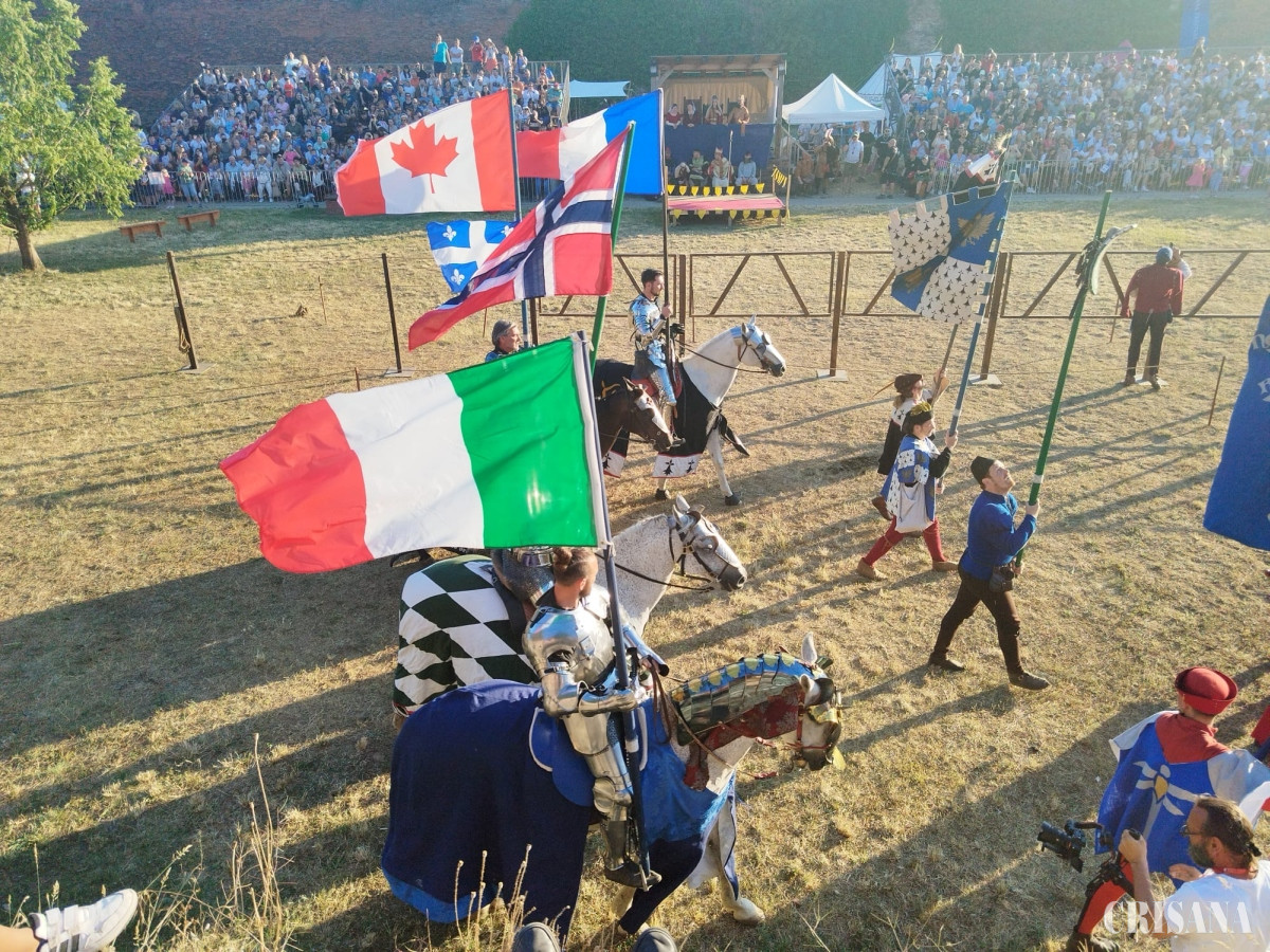 Armurile medievale, cântărind în jur de 60 de kilograme, au fost purtate de concurenți în timpul turnirului. Caii, pregătiți special pentru aceste lupte, au fost partenerii loiali ai cavalerilor. Lăncile, confecționate din lemn solid și având o greutate de aproximativ 20 de kilograme, au fost armele folosite în duelurile spectaculoase. Patru concurenți au fost prezentaţi de heraldul curţii şi aplaudaţi de publicul din tribune: Phillip Leitch din Australia, Dominic Sewell din Anglia, Michael Sadde din Franţa şi Pierre Emmanuel Fabrigli din Italia.