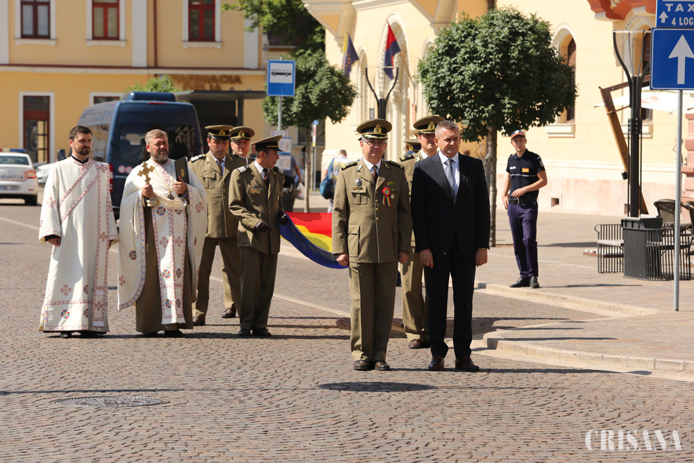 După primirea tricolorului și legarea acestuia la catargul de arborare, preotul militar al Garnizoanei Oradea, Mircea Ioniță, a binecuvântat drapelul, care a fost înălțat pe catarg, nu înainte de a fi sărutat de către oficialitățile prezente la ceremonie: prefectul Ioan Mihaiu, vicepreşedintele Consiliului Județean Bihor, Traian Bodea, primarul Ilie Bolojan, PS Sofronie, episcopul ortodox al Oradiei şi de către comandantul Garnizoanei Oradea, locotenent-colonelul Călin Trip.