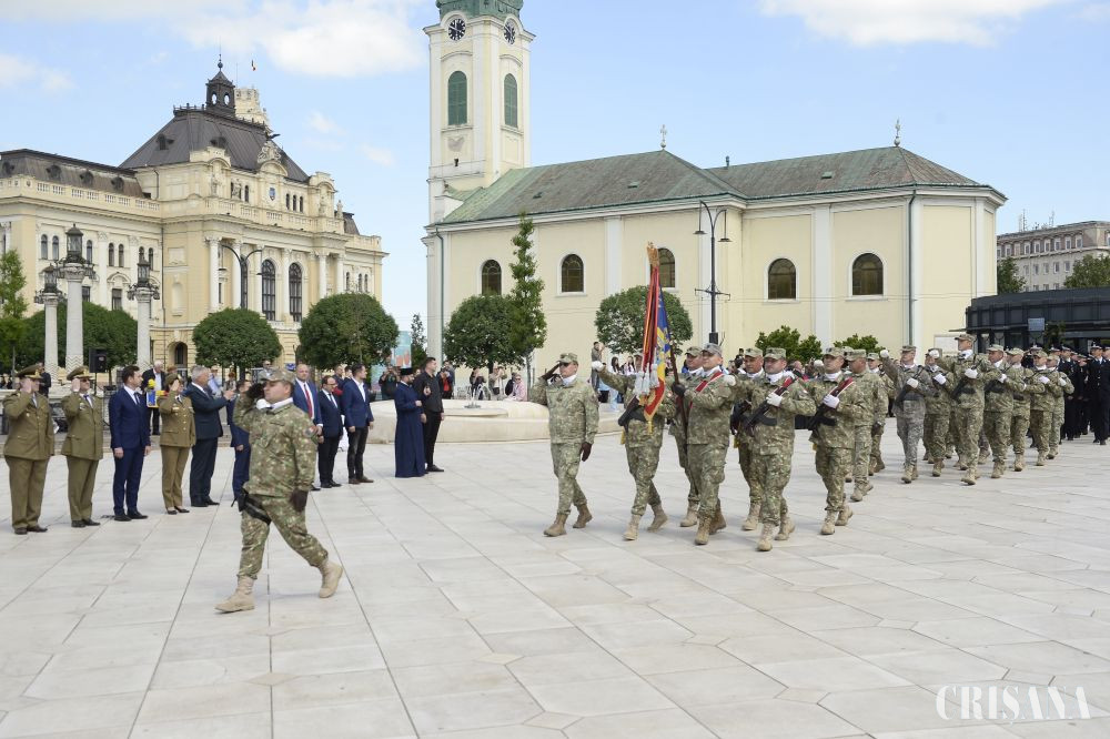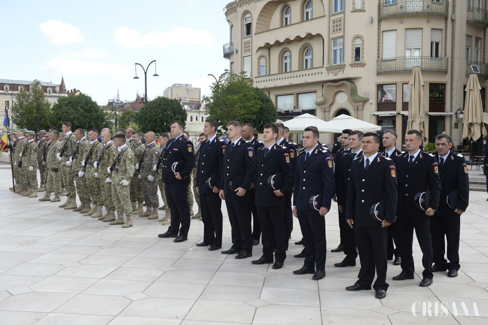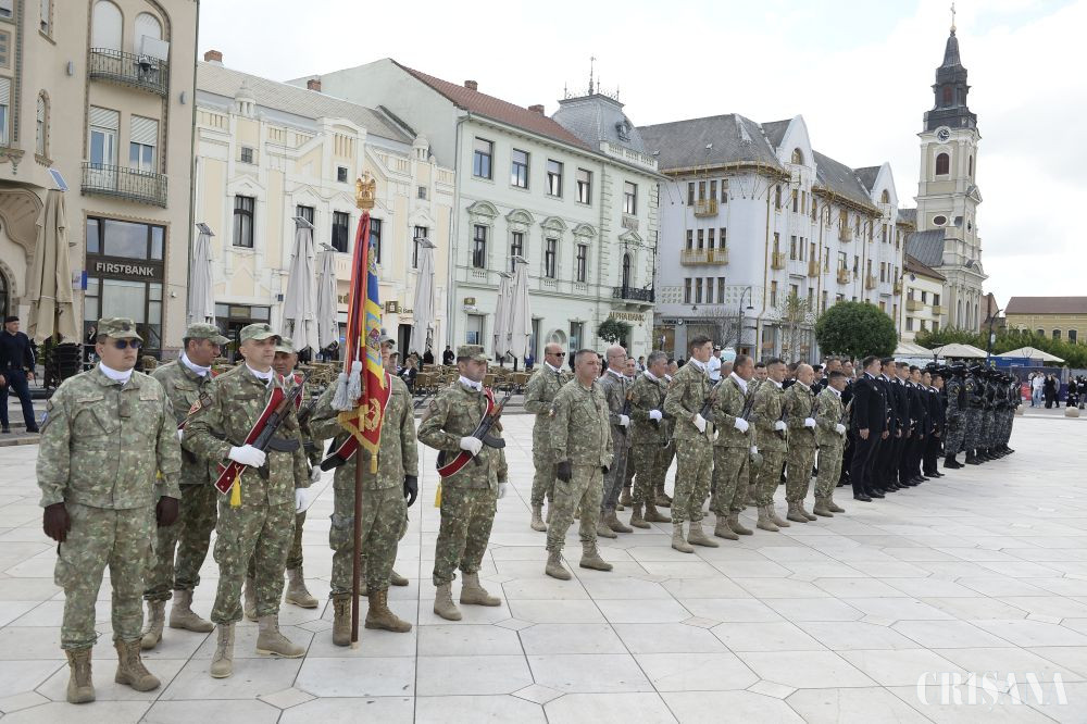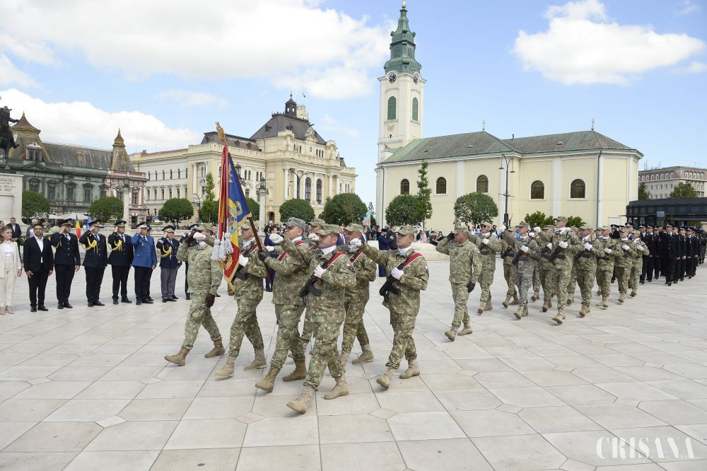 Un ceremonial militar a fost organizat, vineri, în Piaţa Unirii din Oradea, prilejuit de Ziua Independenței Naționale a României, Ziua Victoriei Coaliției Națiunilor Unite în Cel De-al Doilea Război Mondial și Ziua Uniunii Europene.