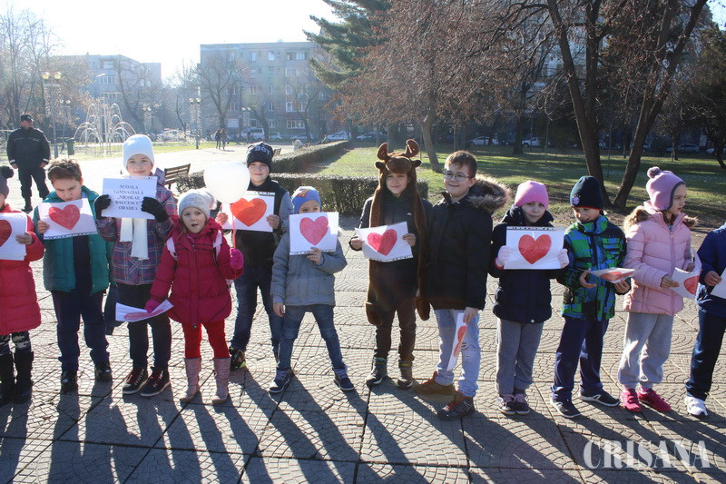 Acţiunea organizată, ieri, în Parcul 1 Decembrie din Oradea a fost una de solidaritate, prietenie şi toleranţă faţă de persoanele cu dizabilităţi. La eveniment au participat elevi din învăţământul de masă, respectiv din cadrul Colegiului Naţional „Mihai Eminescu, Liceul Pedagogic „Iosif Vulcan”, Şcoala Gimnazială „Nicolae Bălcescu”, Grădiniţa Americano-Română „Crinul”, Grădiniţa Nr. 30, Liceul Greco-Catolic „Iuliu Maniu”, Şcoala Gimnazială Nr. 11, dar şi elevi din învăţământul special, respectiv din cadrul CSEI „Orizont”, CSEI Nr. 1, Liceul Tehnologic „George Bariţiu”, CSEI „crystal”, Liceul Tehnologic „Ioan Bococi”. De asemenea la eveniment au fost prezenţi profesori de la Universitatea Oradea, conf. univ. dr. Barth Karla, lect. univ. dr. Denisa Ardelean, lect. univ. dr. Laura Bochiş, studenţi de la specializarea Psihopedagogie Specială, părinţi, reprezentanţi ai ISJ Bihor, prof. Daniela Sopota şi prof. Alina Vese şi reprezentanţi ai Consiliului Judeţean Bihor. Potrivit organizatorilor, acţiuni similare s-au desfăşurat chiar în acel moment în şcolile partenere proiectului din judeţele Bihor, Sibiu, Timişoara, Arad, Cluj, Sălaj, Vrancea, Bacău, Târgu-Mureş, Satu Mare, Bistriţa-Năsăud, Iaşi, Neamţ, Braşov şi Suceava. Evenimentul s-a dorit a fi un îndemn la toleranţă, respect, solidaritate şi prietenie faţă de persoanele cu dizabilităţi. Acţiunea a debutat la ora 11.30 cu un cuvânt de bun venit adresat celor prezenţi de către prof. dr. Angela Maruşca, directorul CSEI „Orizont” Oradea şi coordonatorii proiectului, prof. Melinda Denes şi prof. Adina Cărădan, după care cei mici au primit câte o inimă pe care au ridicat-o spre cer de 10 ori, imitând pulsarea unei singure inimi care bate împreună cu gânduri de solidaritate şi respect faţă de persoanele cu dizabilităţi. Apoi, copii au cântat refrenul cântecului „Prietenia” şi au lansat baloane cu heliu. Evenimentul s-a încheiat cu mesajul „Nu fi indiferent! Arată că-ţi pasă de semenul tău!”, pe care l-au rostit toţi cei prezenţi.