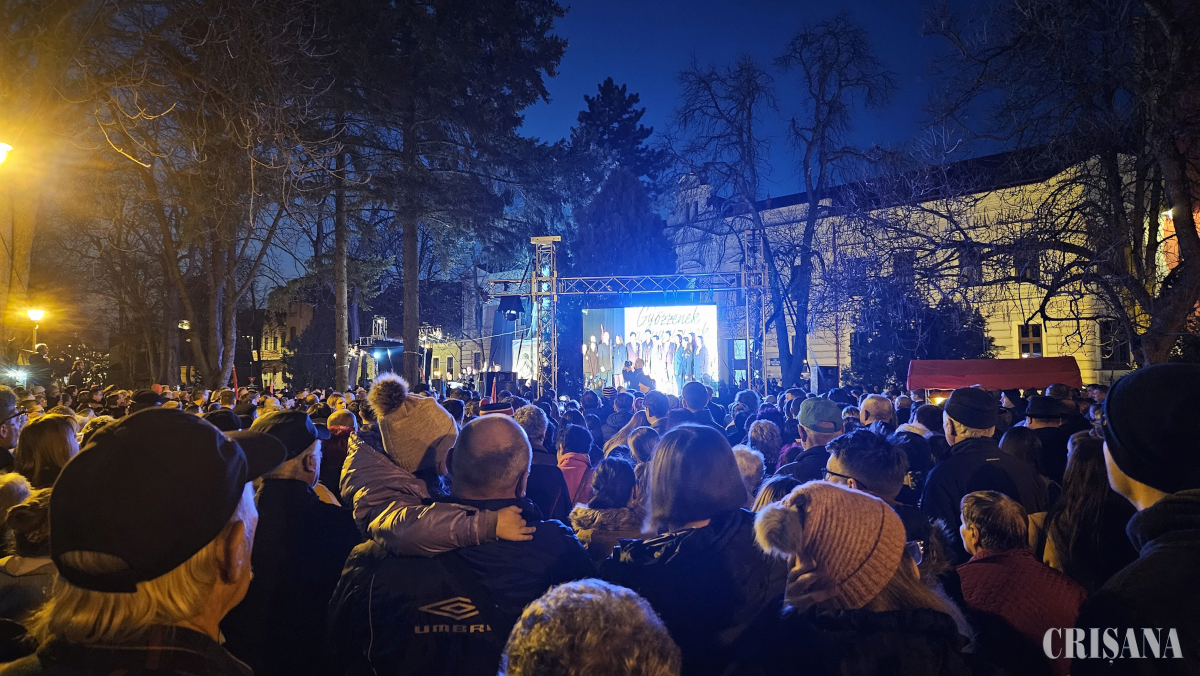 Vineri seară, puțin după ora 20.00, Parcul Libertății devenise neîncăpător. Mulțimea de oameni se întindea până pe podul pietonal, iar discursurile erau proiectate pe două plasme mari, amplasate într-o parte și în cealaltă a scenei din fața statuii lui Szacsvay Imre. În mulțime erau mulți tineri în costume populare. Unii făceau selfie-uri cu scena din spatele lor, alții discutau veseli cu cei care îi înconjurau. Oamenii între două vârste și vârstnicii ascultau cu seriozitate ce se spunea pe scenă. Mulți copii se jucau, mai ales în spațiul de pe malul Crișului Repede de lângă Podul Intelectualilor.