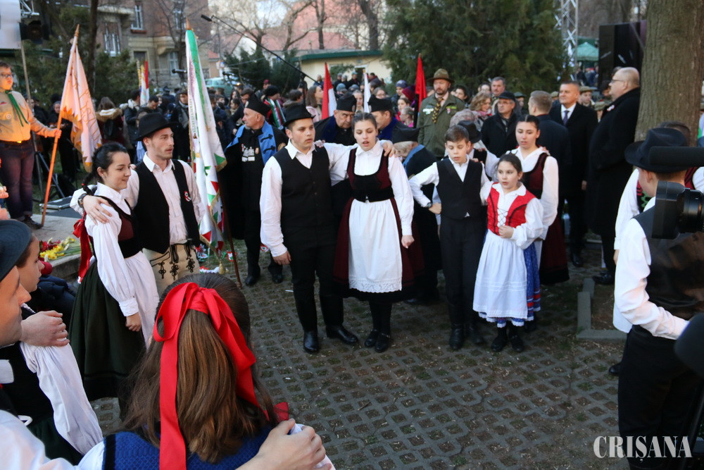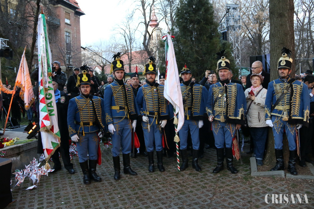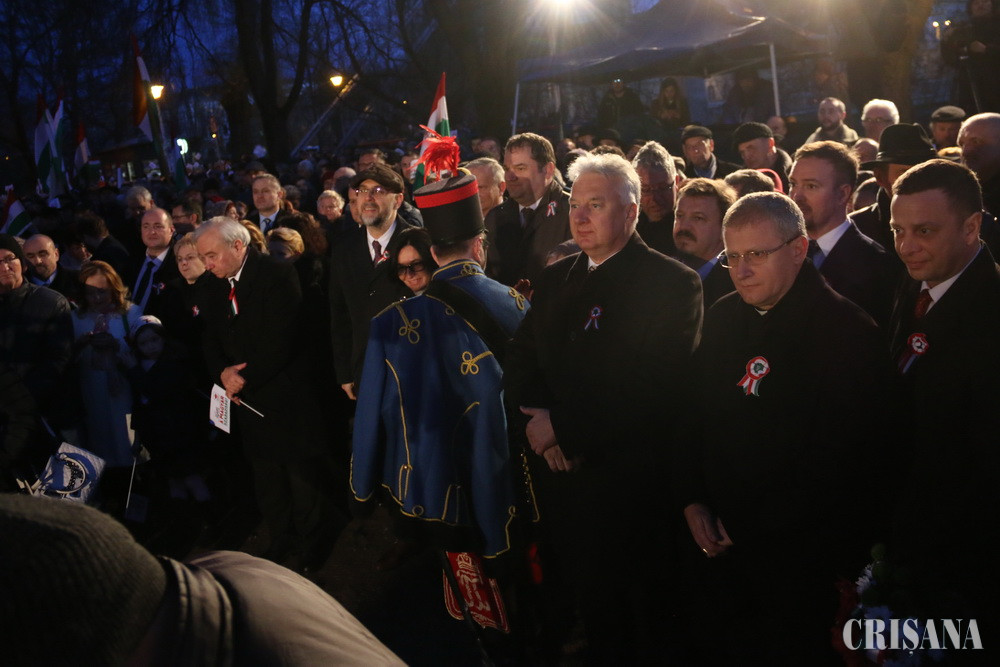 Manifestările au fost onorate cu prezenţa de vicepremierul Ungariei, Semjén Zsolt. În discursul său, acesta a amintit importanţa Oradiei în Revoluţia din 1848 şi, în contextul alegerilor pentru Parlamentul European care se apropie, a îndemnat oamenii la vot. „Prin exprimarea voinţei politice ne apărăm valorile şi interesele în Europa”, a spus Semjén Zsolt. În continuare, preşedintele UDMR Kelemen Hunor a vorbit despre problemele minorităţii maghiare din România, militând pentru demnitate, pentru relaţii paşnice şi amintind că maghiarii au dreptul de a-şi folosi simbolurile naţionale fără a fi atacaţi în discursuri pline de ură.