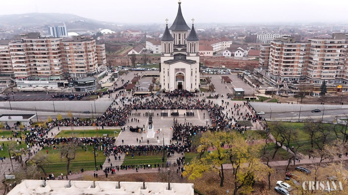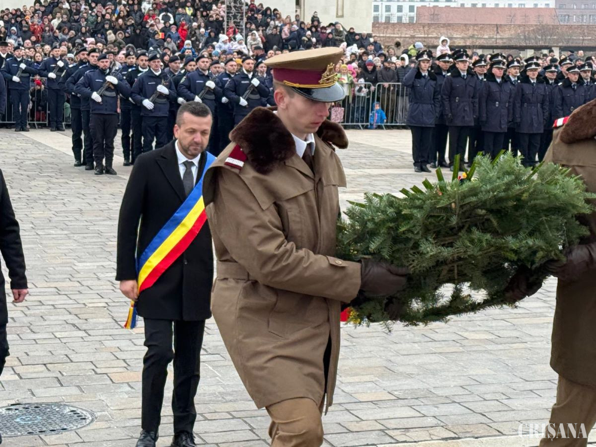 Mii de oameni s-au adunat luni, 1 decembrie, pe platoul din faţa Catedralei Episcopale „Învierea Domului” din Oradea, la Statuia ecvestră a lui Mihai Viteazul, pentru a participa la manifestările organizate cu ocazia Zilei naţionale a României.