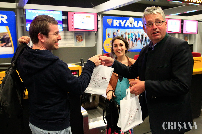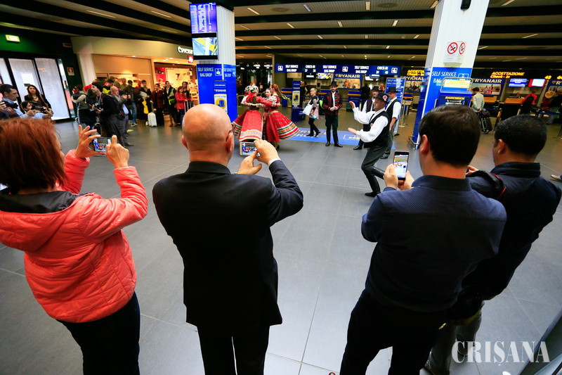 Ansamblul de dans profesionist „Nagyvárad” a susținut câteva dansuri specifice zonei noastre, de aproximativ 15 minute. Pentru reușita acestui program trebuie evidențiată colaborarea cu RyanAir, cu directorul Aeroportului din Bergamo, Giacomo Cattaneo, cât și cu reprezentanții serviciului de pază și securitate. După tăierea tortului, având culorile tricolorului, fiecare călător a primit câte o felie. De asemenea, au fost împărțite felicitări pentru că sunt călători ai acestei curse de Milano - Oradea, broșuri și câte o ciocolată de casă împachetată în harta Bihorului cu principalele destinații. Președintele Pásztor Sándor a precizat că „această cursă Oradea - Milano nu trebuie să fie un scop în sine, ci un instrument util pentru a dezvolta Țara Bihorului. De aceasta suntem acum aici, într-un de tur de forță, Târgul de oferă posibilitatea de a ne promova turistic și cultural, iar în materialul de marți seara, de la Milano, voi prezenta parcurile industriale ca principal punct de atracție pentru investitori și parteneriate economice”.