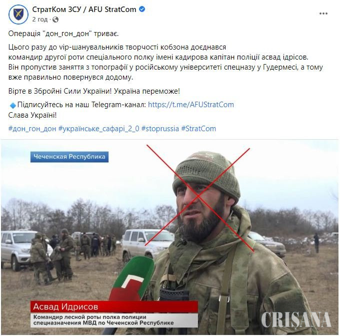 Este vorba de Asvad Idrisov, cunoscut pe reţelele sociale drept „comandantul Tik Tok” datorită frecvenţei mari cu care posta. Acesta participa la invazia Ucrainei şi a fost ucis în luptele de lângă Severodoneţk.Forţele ucrainene au eliminat şi alţi ceceni în timpul operaţiunilor.