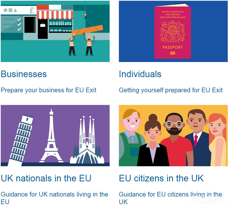 Site-ul acoperă toate scenariile de ieşire din UE şi include sfaturi pe teme care variază de la noile restricţii privind transportul animalelor de companie în vacanţă şi până la documentele suplimentare necesare la importurile de bunuri din blocul comunitar.