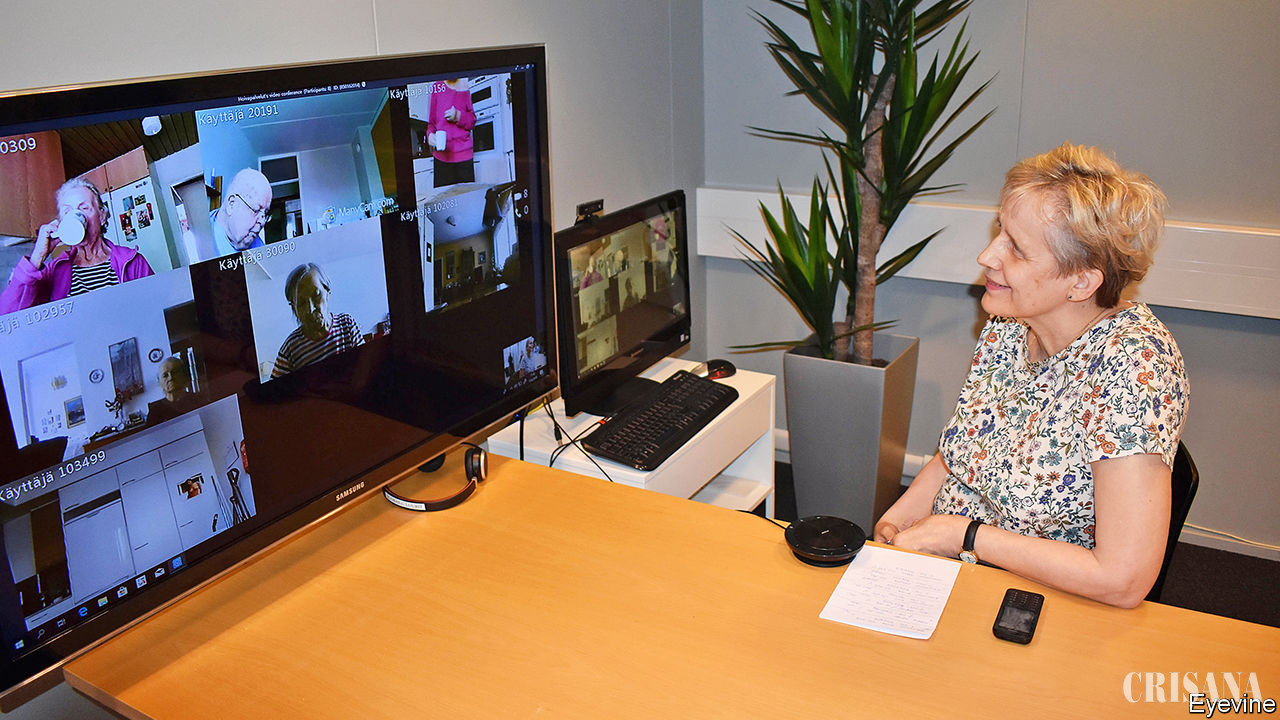 Finlandezii se mândresc cu faptul că se bazează mai degrabă pe ei înșiși, motiv pentru care ideea de persoane bătrâne și bolnave care locuiesc singure nu îi îngrijorează. Totuși, izolarea socială este o mare problemă pentru persoanele în vârstă, pentru că poate provoca un declin cognitiv și fizic mai rapid. Pentru a combate fenomenul, autoritățile din domeniu organizează întâlniri virtuale între bătrânii înscriși în sistem, pe diverse teme, de la sport și muzică la lectură și religie.