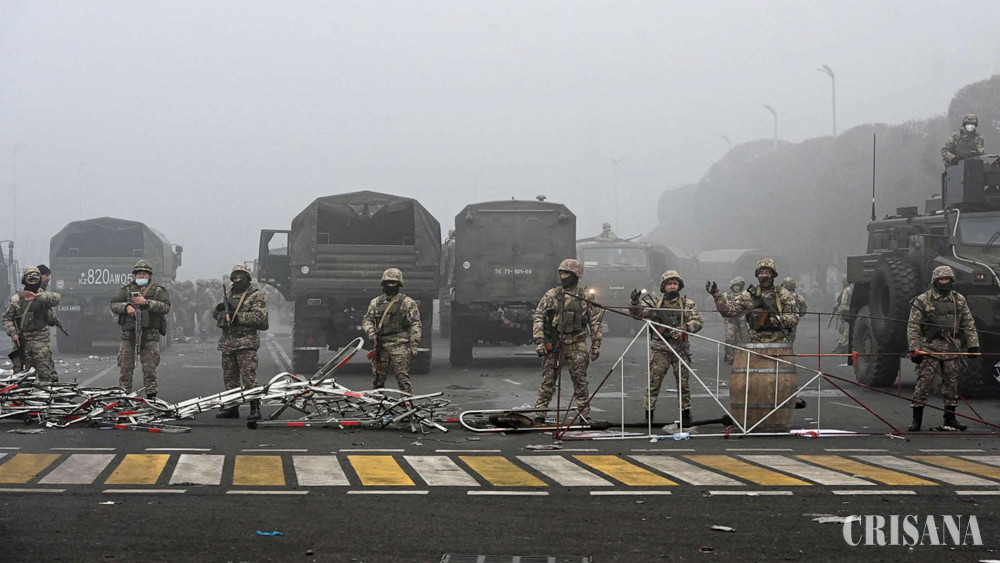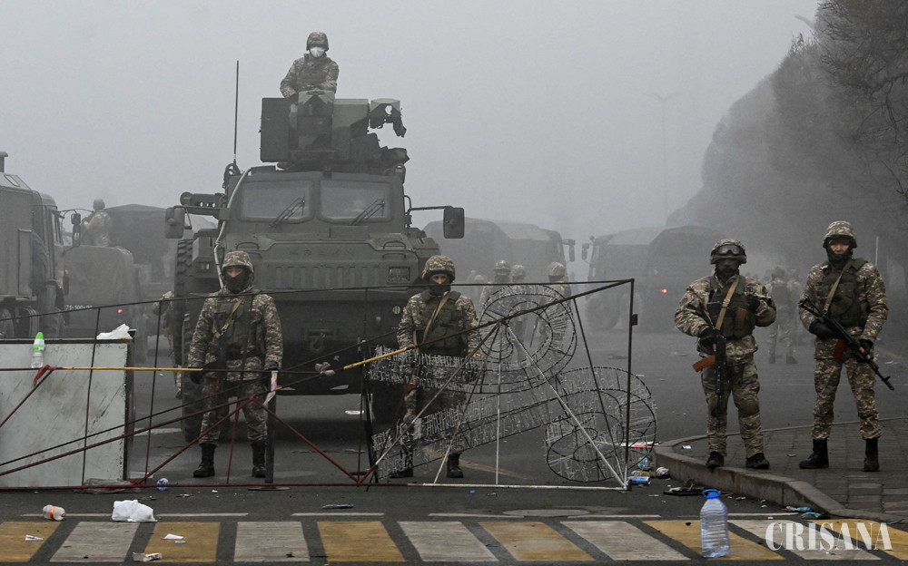 La solicitarea guvernului kazah, Moscova a trimis militari ca parte a desfăşurării unei "forţe colective de menţinere a păcii" a Organizaţiei Tratatului de Securitate Colectivă (CSTO), organism aflat sub controlul Rusiei.