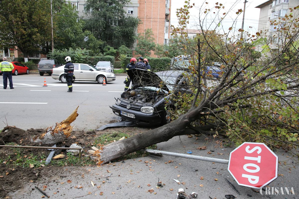 Potrivit comisarului şef Alina Fărcuţa, purtătorul de cuvânt al IPJ Bihor, sâmbătă, în jurul orei 15.50, polițiștii Biroului Rutier Oradea au depistat în trafic un bărbat de 36 de ani, din comuna Paleu, care, în timp ce conducea un autoturism pe Bulevardul Ștefan cel Mare din municipiul Oradea, aflându-se sub influența alcoolului, a pierdut controlul asupra direcției și a lovit un copac, care, în urma impactului, a căzut peste un autoturism. Evenimentul rutier a fost unul fără victime.