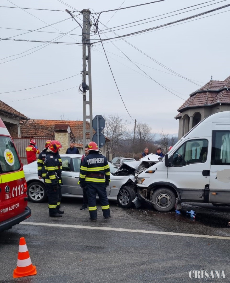 Accident cu 24 de persoane implicate - Coliziune între un microbuz și un autoturism în Petrileni