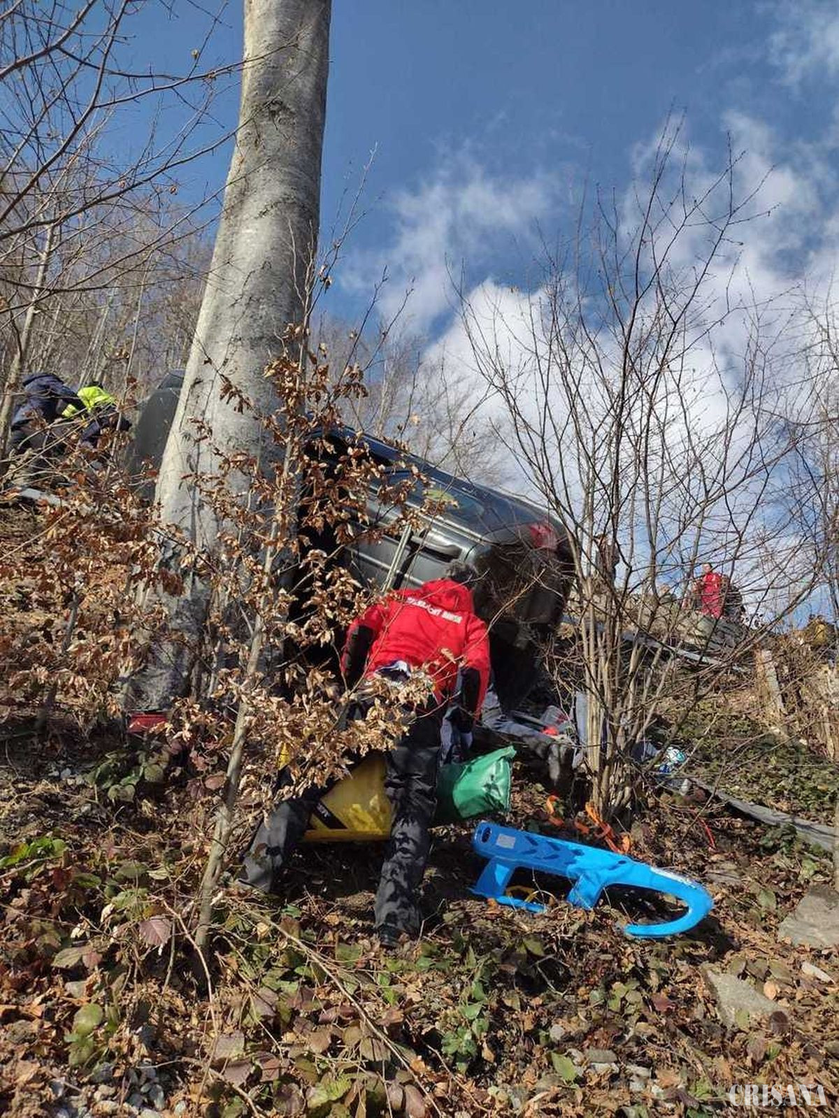 „Fiind prima echipă de intervenţie ajunsă la faţa locului, salvatorii montani au trebuit întâi să asigure autovehiculul răsturnat pentru a prevenii alunecarea acestuia pe versant şi să deschidă o cale de acces, în siguranţă, spre vehicul.