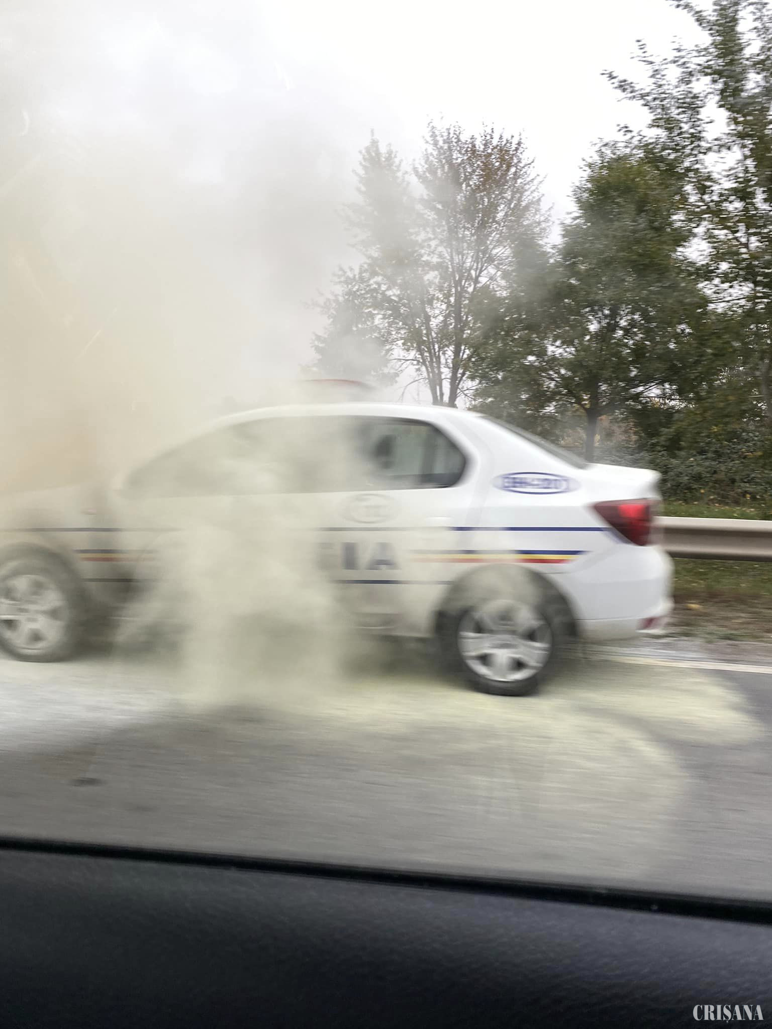O autospecială a Inspectoratului de Poliție Județean Bihor a luat foc, în mers, la scurt timp după ce a fost scoasă din service.