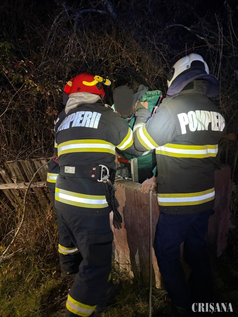 Apelul la Sistemul Unic 112 a fost efectuat chiar de victimă, în jurul orei 19.10. Aceasta a precizat că a căzut într-un puț și a solicitat sprijinul echipajelor de intervenție, menționând totodată că nu știa cu exactitate locația fântânii. Pentru reducerea timpului de răspuns, dispeceratul ISU Bihor a identificat rapid coordonatele transmise de telefonul apelantului. Astfel, în aproximativ 10 minute, pompierii Secției Beiuș au ajuns la locul evenimentului, situat pe un teren de la marginea satului și au început operațiunile de salvare. Utilizând scara culisabilă și echipamente specifice, salvatorii au evacuat bărbatul din fântâna cu o adâncime de circa 6 metri și un nivel al apei de aproximativ 1,5 metri. Pompierii paramedici i-au acordat victimei, în vârstă de 38 de ani, care prezenta ușoară hipotermie și excoriații la nivelul spatelui, primul ajutor calificat, transportând-o ulterior la spital.