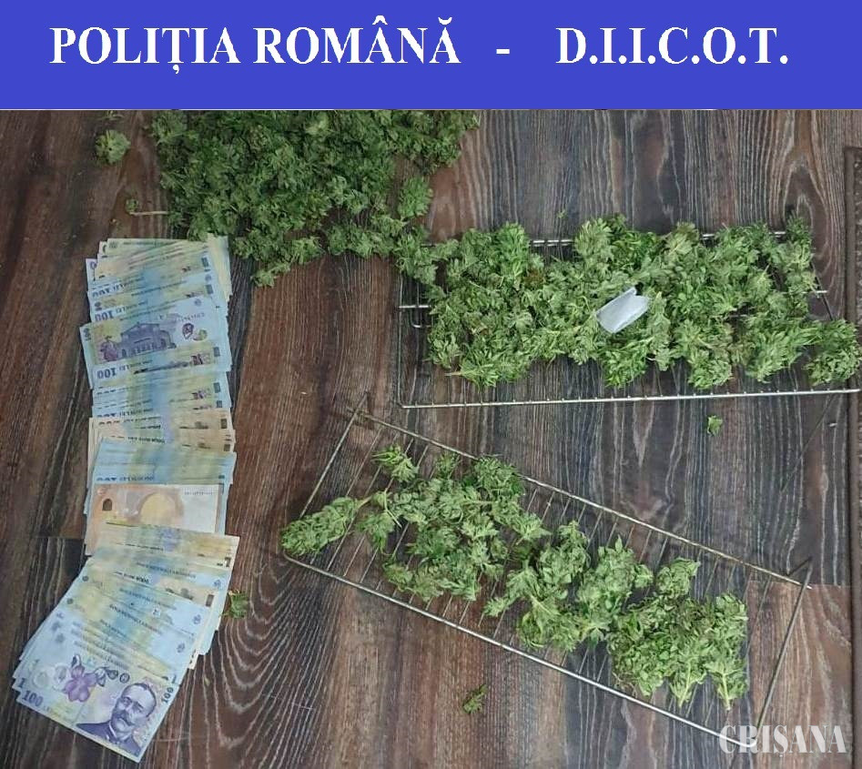 Luni, 26 octombrie, în localitatea Aleșd, polițiștii Brigăzii de Combatere a Criminalității Organizate Oradea – Serviciul Antidrog și procurorii D.I.I.C.O.T. – S.T. Oradea au prins în flagrant delict un bărbat, de 26 de ani, bănuit de trafic intern de droguri de risc. Acesta a fost depistat în timp ce ar fi primit o sumă de bani, care ar fi reprezentat contravaloarea unei cantități de 100 de grame de cannabis, vândută anterior și, în același timp, încercând să valorifice alte 105 grame de cannabis. În urma efectuării a două percheziții domiciliare, în aceeași zi, în localitatea Aleșd, polițiștii au descoperit și ridicat 517 grame de cannabis, o instalație artizanală de cultivare și uscare a cannabisului indoor, un aparat de mărunțit, un cântar de mare precizie, mai multe semințe de cannabis, precum și 18.200 de lei.