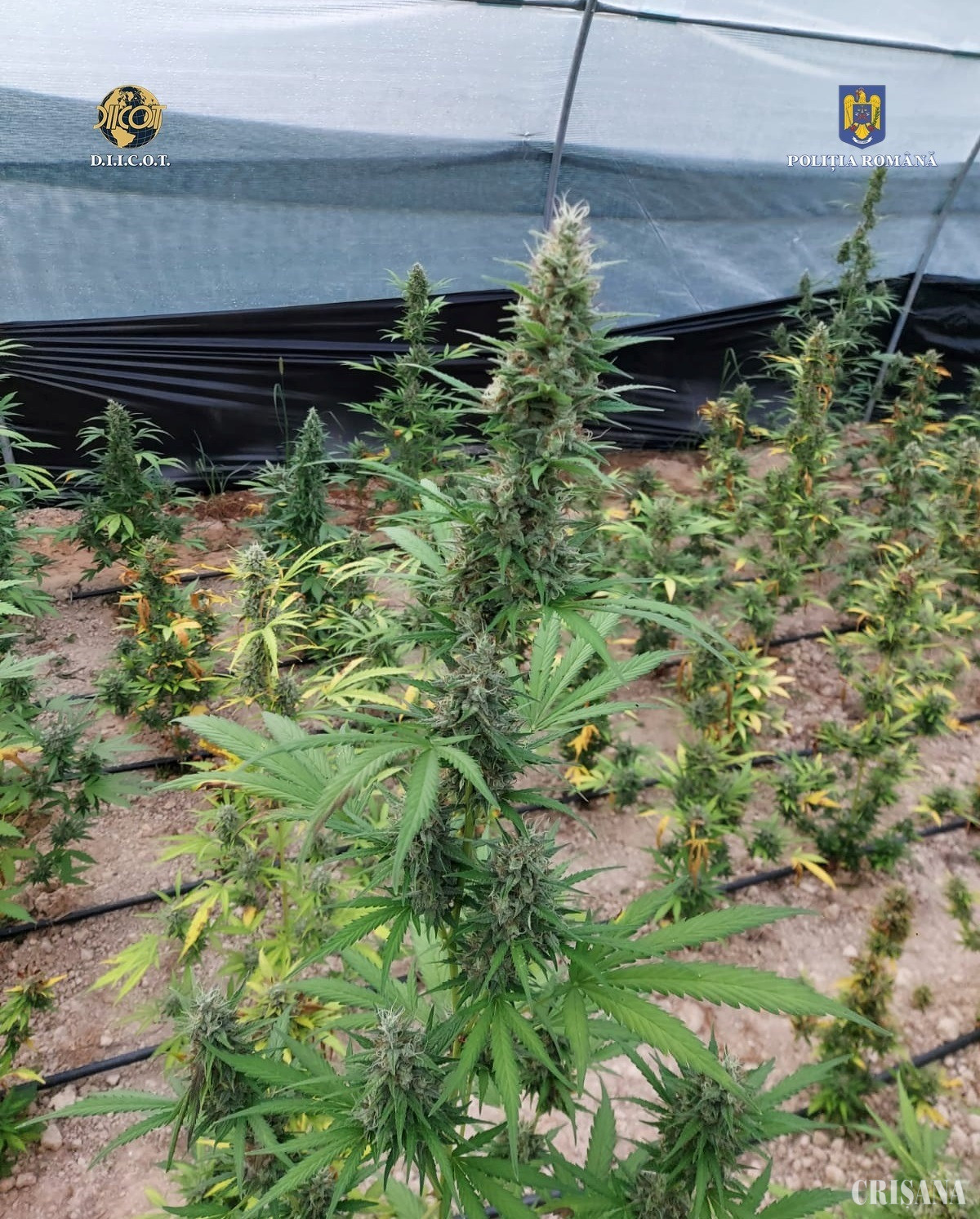 În urma percheziției efectuate la locația respectivă, au fost descoperite două solarii, de mari dimensiuni, amenajate în vederea cultivării plantelor de cannabis, prevăzute cu sisteme de irigare și ventilație, în care au fost găsite 2.628 de plante de cannabis, în diferite stadii de dezvoltare.