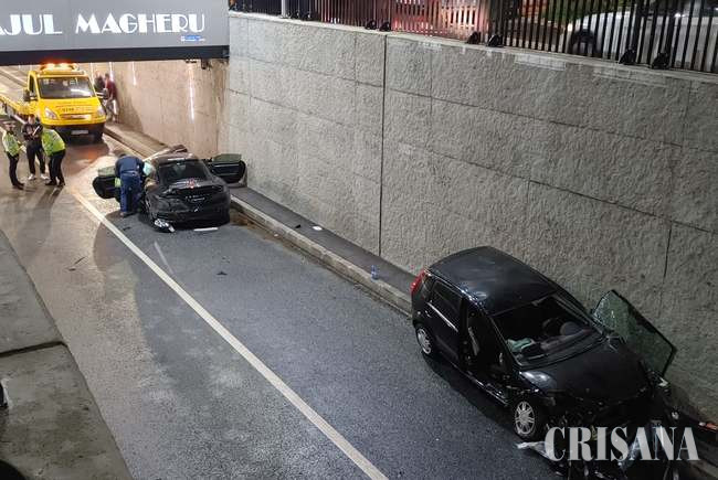 Patru persoane au fost rănite în urma accidentului care s-a produs sâmbătă seara, la ora 19.50, în Pasajul Magheru din Oradea. Ambii şoferi implicaţi în coliziune erau băuţi.