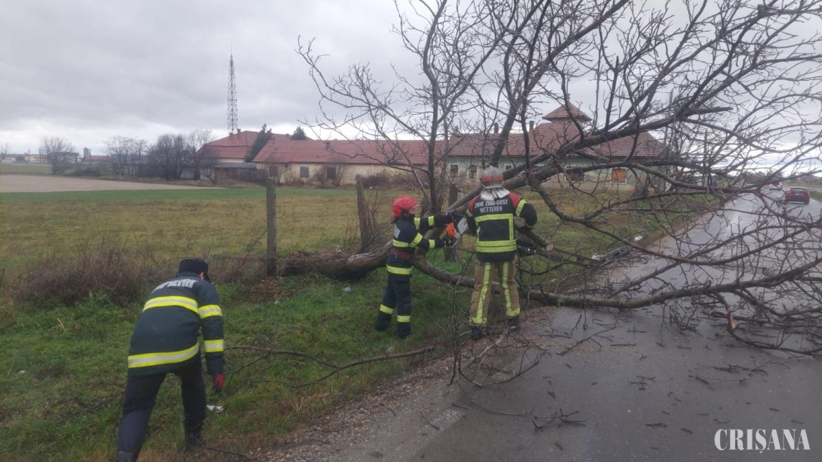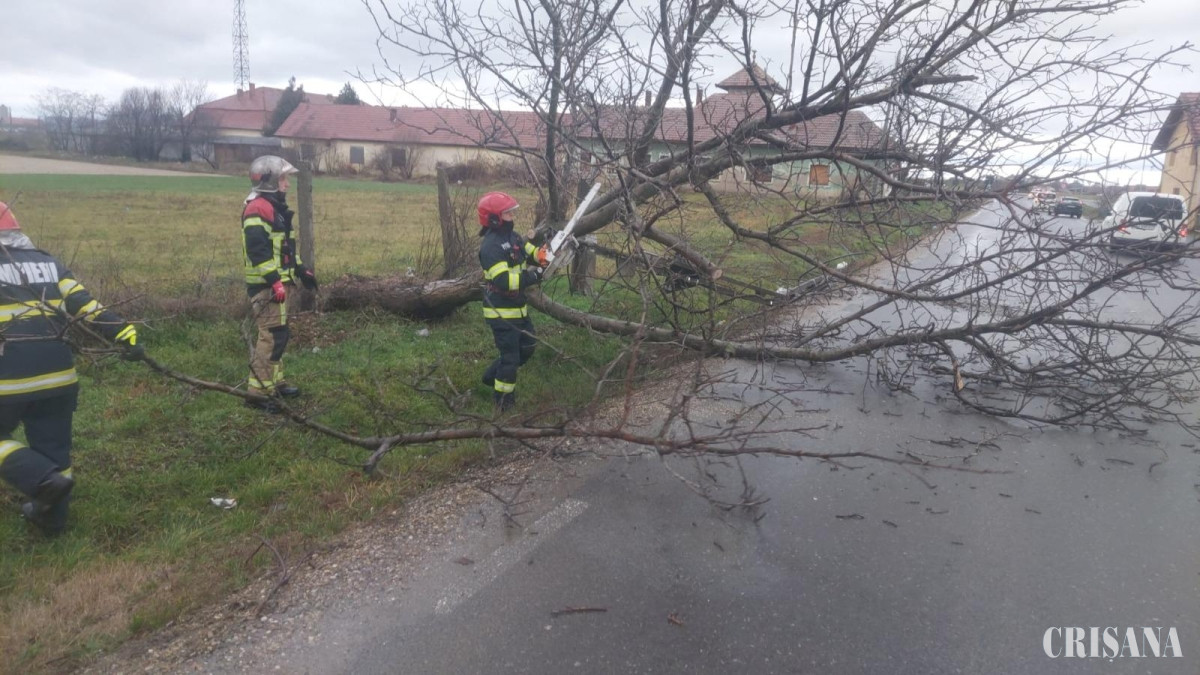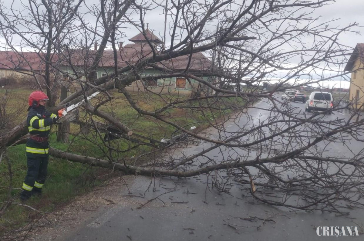 Tot în cursul nopții de marți spre miercuri, echipajele Detașamentului 1 Oradea au acționat în municipiu, pe strada Libertății, pentru degajarea unei crengi căzute pe un autoturism, respectiv pe strada Octavian Goga, pentru înlăturarea unui copac doborât de vântul puternic pe carosabil, iar pompierii Stației Aleșd au intervenit pe DJ 764, în Aștileu, pentru degajarea unui stâlp de telefonie căzut pe carosabil. Miercuri, intervenţiile pompierilor au continuat, echipajele acţionând pe strada Corneliu Coposu din Oradea, dar şi pe strada Ciucului din Episcopia sau Cazaban, din municipiu, îndepărtând arborii căzuţi pe trotuar, respectiv pe un autoturism.