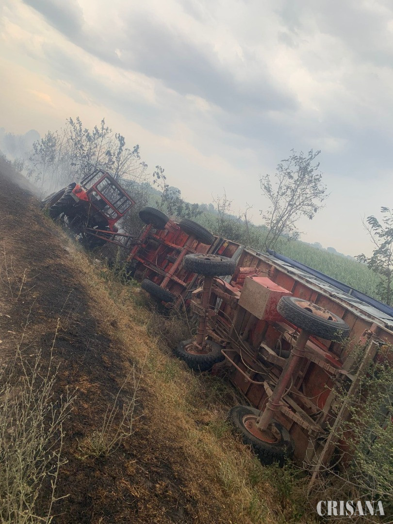 „Vizibilitatea în zonă a fost grav afectată de fumul dens, astfel că un bărbat ce se afla la munca câmpului cu tractorul, aproape de zona incendiată, s-a răsturnat în șanțul de la marginea parcelei unde lucra. Din fericire, acesta s-a autoevacuat, însă tractorul a fost cuprins de flăcări”, au transmis reprezentanții ISU Bihor.