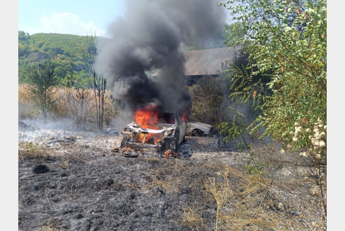 Incendiu de vegetaţie în Peștere - Două autoturisme au ars