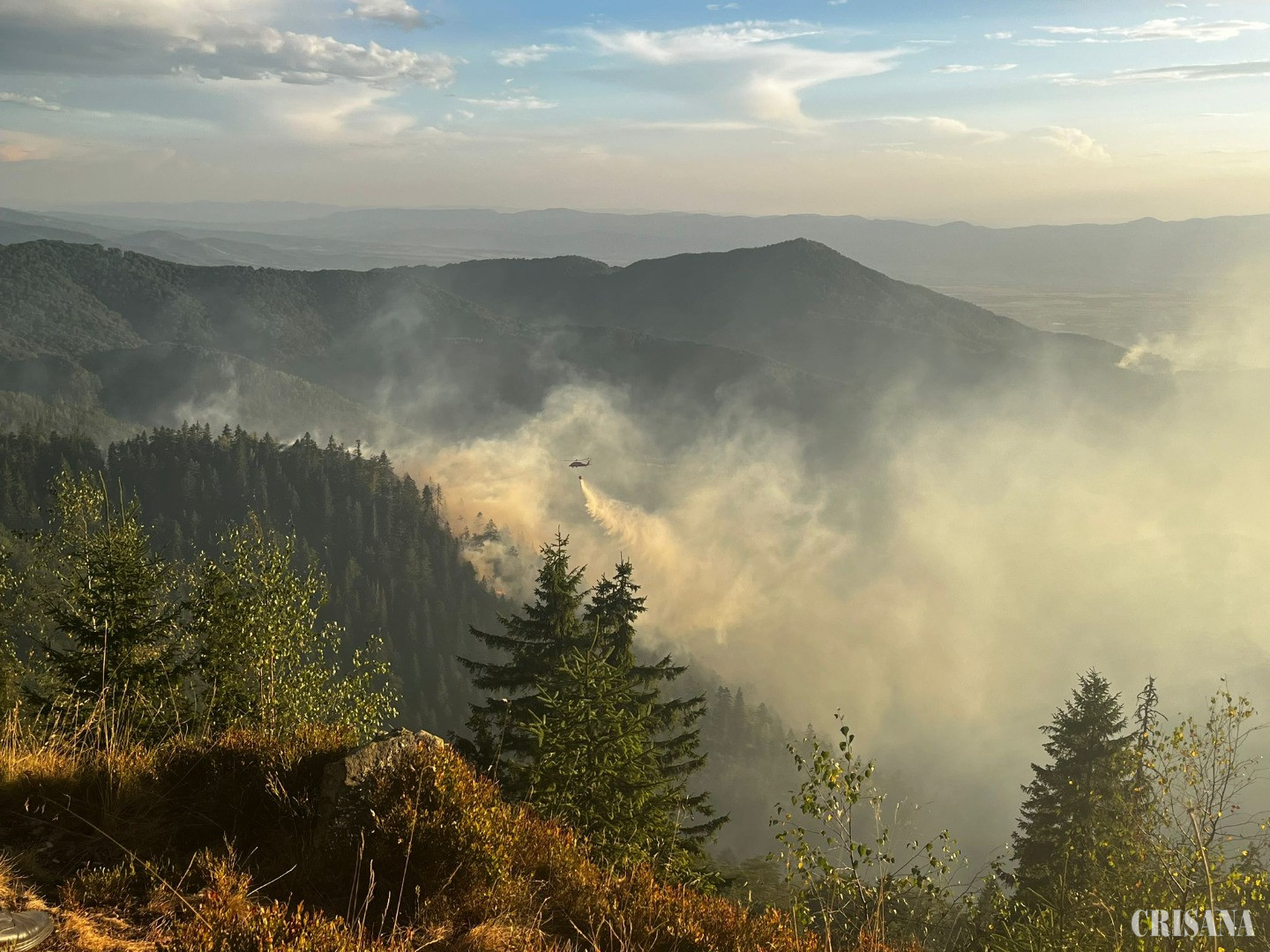 „Pentru o intervenție eficientă a fost solicitat un elicopter din cadrul Inspectoratului General de Aviaţie, echipat cu sistem Bambi Bucket. Misiunea de stingere este organizată atât prin intervenția aeriană cu ajutorul elicopterului, cât și prin echipaje pedestre de pompieri care intervin pentru localizarea incendiului”, a mai transmis Alina Butaci.