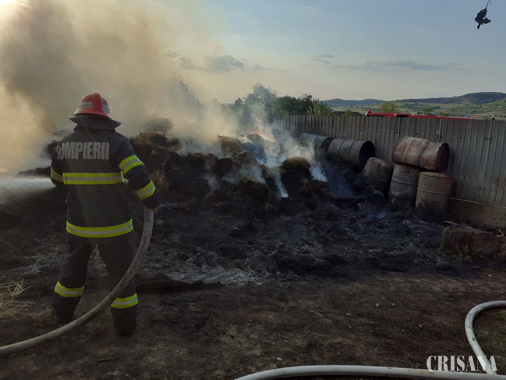Echipajele de pompieri au reușit să salveze casa din cadrul gospodăriei la care a izbucnit incendiul și celelalte două case aflate la o distanță de câteva zeci de centimetri de flăcări și circa 500 de baloți de paie.