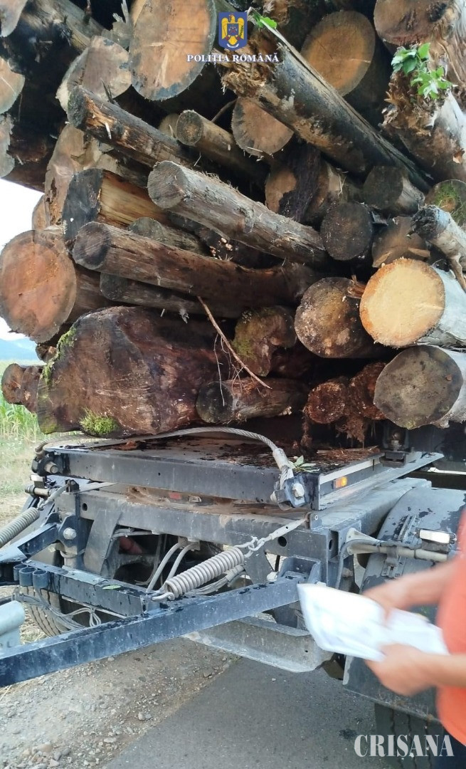 Potrivit IPJ Bihor, la data de 21 iulie a.c., la ora 20.40, pe drumul comunal 225, în localitatea Pocioveliște, polițiștii Secției nr.2 de Poliție Rurală Beiuș au depistat în trafic un bărbat de 48 de ani, din comuna Roșia, în timp ce transporta, cu un autotren cu remorcă, 46,56 de metri cubi de material lemnos, specia molid, fără a deține documente specifice de transport.