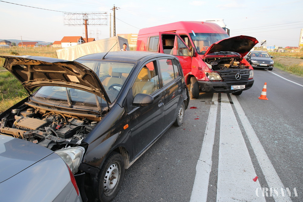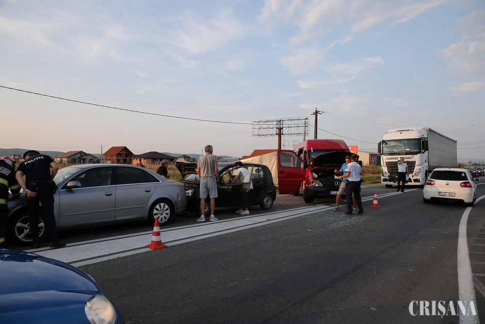 Accidentul s-a produs duminică seara, în jurul orei 19.36, implicate fiind două autoturisme, un microbuz şi un autocamion. La faţa locului a fost mobilizat un echipaj de pompieri din cadrul Detaşamentului 1 de pompieri Oradea şi echipajul de Terapie Intensivă al SMURD. Opt persoane, şoferi şi pasageri ai vehiculelor au fost evaluate de medici. Din fericire, nimeni nu a fost rănit. Traficul în zonă a fost însă îngreunat, circulându-se alternativ până când salvatorii s-au asigurat că toţi cei implicaţi sunt în afara pericolului. Cel mai probabil, coliziunea s-a produs pe fondul nerespectării distanţei regulamentare. Pentru că nicio victimă nu a avut nevoie de îngrijiri medicale, evenimentul a fost înregistrat drept tamponare.
