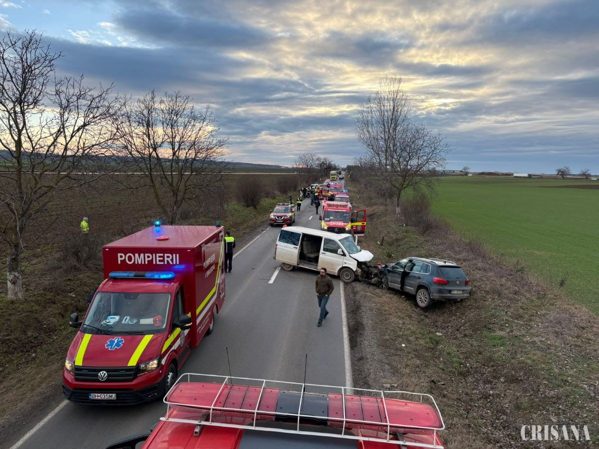 Polițiștii Serviciului Rutier – Biroul Drumuri Naționale și Europene au fost sesizați, miercuri, la ora 16.31, în urma unui apel primit prin SNUAU 112 că, pe DN19 E, în afara localității Sălard, s-a produs un accident rutier. „Din investigațiile efectuate de polițiștii rutieri, la fața locului, s-a constatat că, un bărbat, de 48 de ani, din comuna Sântandrei, județul Bihor, în timp ce conducea un autoturism, în afara localității Sălard, pe DN19 E, pe direcția Sălard - Cauaceu, pe un sector de drum în aliniament, în condiții ce urmează a fi stabilite din cercetări, ar fi pătruns pe sensul opus de circulație și a intrat în coliziune frontală cu un autoturism (prevăzut cu 8+1 locuri) condus, din sens opus, de un bărbat, de 57 de ani, din municipiul Oradea. În urma impactului, al doilea autoturism (cel prevăzut cu 8+1 locuri) ar fi fost proiectat pe sensul opus de circulație, unde a intrat în coliziune frontală cu un autoturism, condus pe direcția Sălard – Cauaceu, de o femeie, de 39 de ani, din Oradea”, a transmis Poliția Bihor. De asemenea, tot în urma impactului inițial, primul autoturism ar fi rulat pe sensul opus de circulație și ar fi acroșat, cu partea laterală - stânga, un autoturism, condus pe direcția Cauaceu - Sălard, de o femeie, de 26 de ani, din comuna Popești, iar ulterior, primul autoturism ar fi intrat în coliziune frontală cu un alt autoturism, condus tot din direcția Cauaceu - Sălard, de o femeie, de 39 de ani, din comuna Tămășeu. În urma accidentului rutier, conducătorul celui de-al doilea autoturism și conducătoarea celui de-al treilea autoturism au suferit leziuni, pentru îngrijirea cărora au fost transportați la spital.