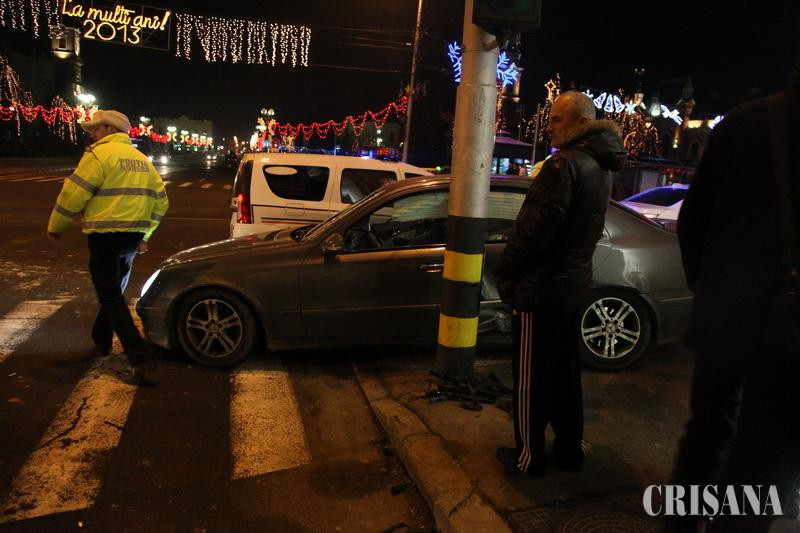 La intersecţia străzilor Independenţei şi Piaţa Unirii din Oradea, vineri seara, un Mercedes E Class a intrat în intersecţie din direcţia Piaţa Independenţei, fiind lovit de un VW Golf care circula dinspre strada Avram Iancu.