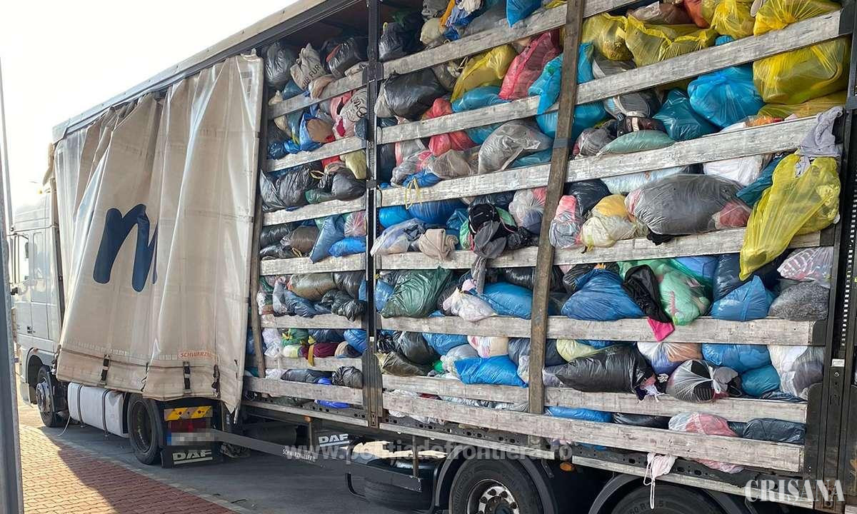 Tone de cauciucuri uzate și îmbrăcăminte second hand - Oprite la graniță de polițiști