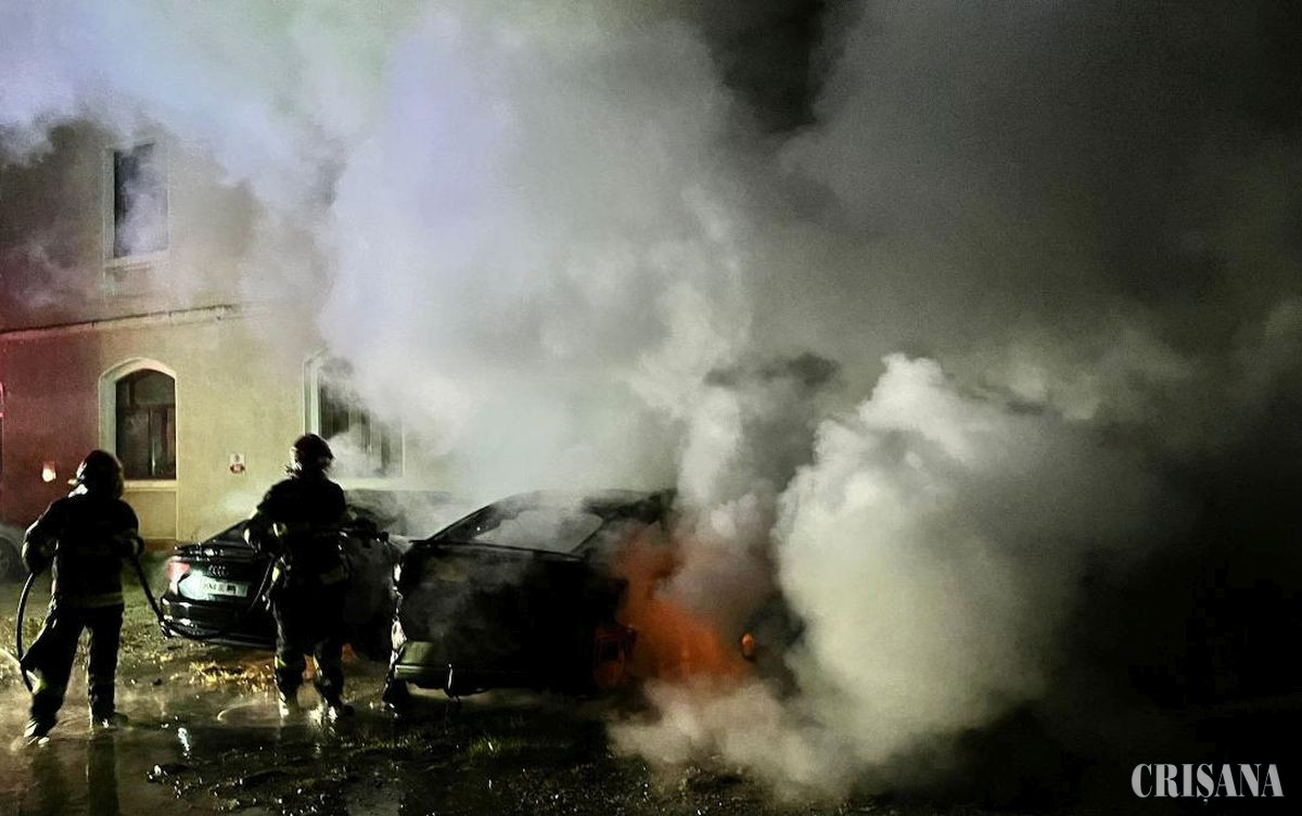 Trei mașini au fost distruse în urma unui incendiu de amploare, care amenința să cuprindă o întreagă clădire aflată la mai puțin de jumătate de metru de focare, pe strada Cuza Vodă din localitatea Ștei.