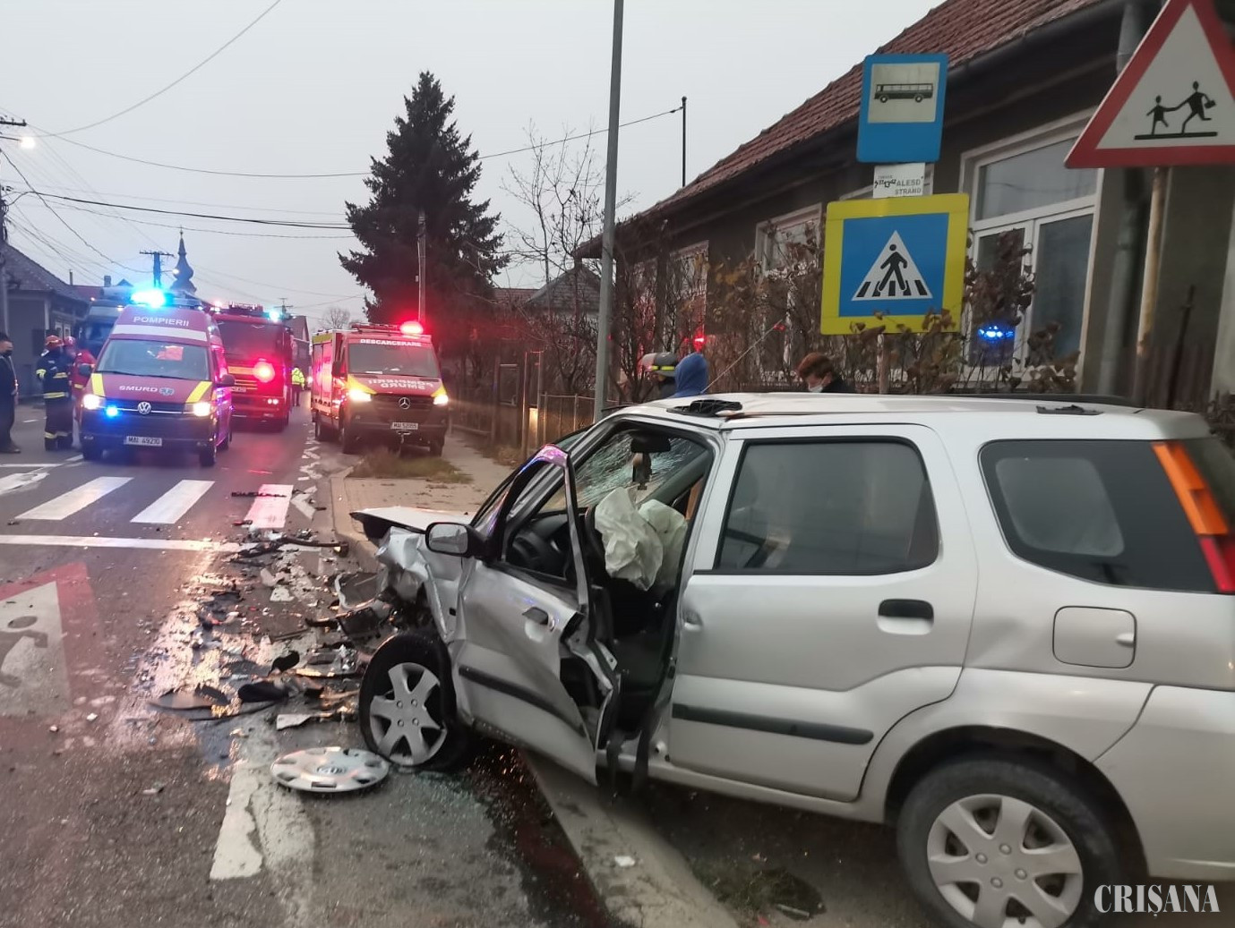 În dimineața zilei de joi, în jurul orei 07.30, Inspectoratul pentru Situaţii de Urgenţă „Crişana” al judeţului Bihor a fost sesizat, prin Sistemul Unic 112, cu privire la producerea unui accident rutier pe DN 1, pe raza localității Tinăud, eveniment în care au fost implicate cinci persoane aflate în două autoturisme. „Pentru salvarea victimelor, Inspectoratul a mobilizat operativ trei echipaje de pompieri militari din cadrul Stației de Pompieri Aleșd, care au intervenit cu o autospecială de descarcerare, o autospecială de lucru cu apă și spumă și cu ambulanța SMURD a subunității, precum și două echipaje ale Serviciului de Ambulanță Județean (SAJ)”, a transmis mr. Camelia Roşca, purtătorul de cuvânt al ISU Bihor. Echipajul de descarcerare a evacuat două persoane rămase blocate într-unul din autoturismele avariate, iar echipajul de pompieri militari paramedici și echipajele SAJ au evaluat victimele și le-au acordat îngrijirile necesare, trei dintre acestea (două rănite ușor și una cu răni mai grave) fiind transportate ulterior la Unitatea de Primiri Urgențe a Spitalului Clinic Județean Oradea. „La ora 7.30, pe DN1 în localitatea bihoreană Tinăud, un bărbat de 34 de ani din comuna Auşeu, judeţul Bihor, în timp ce conducea un autoturism pe direcţia Aleşd-Auşeu, nu a adaptat viteza de deplasare la condiţiile de drum, aflându-se în zona de limitare a vitezei de deplasare la 30 km pe oră, a pătruns pe sensul opus de circulaţie şi a intrat în coliziune frontală cu un autoturism condus regulamentar de un bărbat de 75 de ani din Tinăud”, a precizat agentul şef adjunct Ioana Lascău, ofiţer de presă al IPJ Bihor.