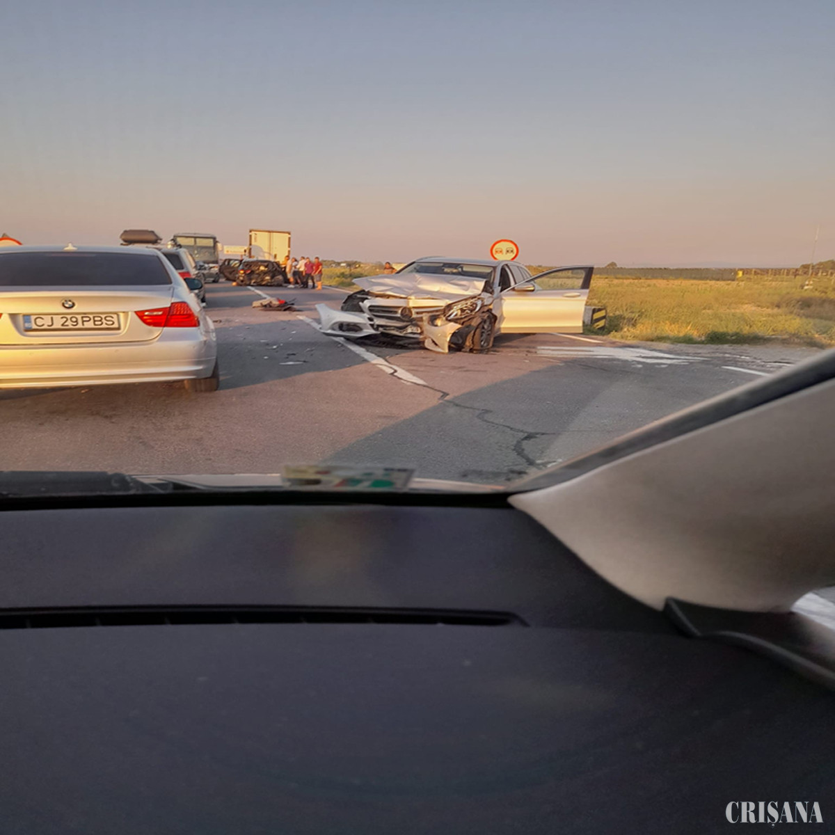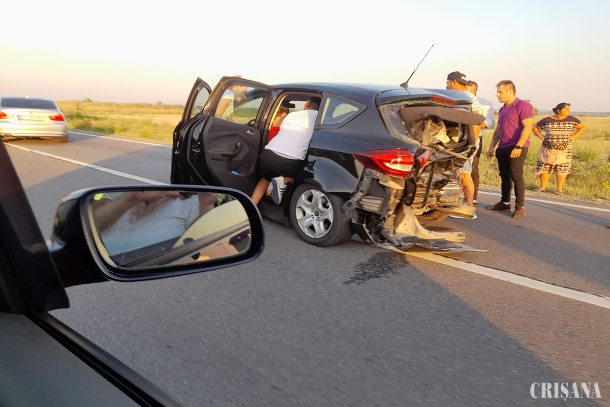 Sâmbătă, 6 august, în jurul orei 20.10, pe DN 1, un tânăr de 24 de ani, din comuna Aușeu, județul Bihor, în timp ce conducea un autoturism pe direcția Oradea - Aleșd, în împrejurări ce urmează a fi stabilite din cercetări, nu a păstrat o distanță corespunzătoare în timpul deplasării și a acroșat din spate un autoturism care circula în aceeași direcție și care era oprit la axul drumului, intenționând să efectueze un viraj la stânga pe o stradă laterală, condus de un bărbat de 42 de ani, din localitatea Agigea, județul Constanța.
