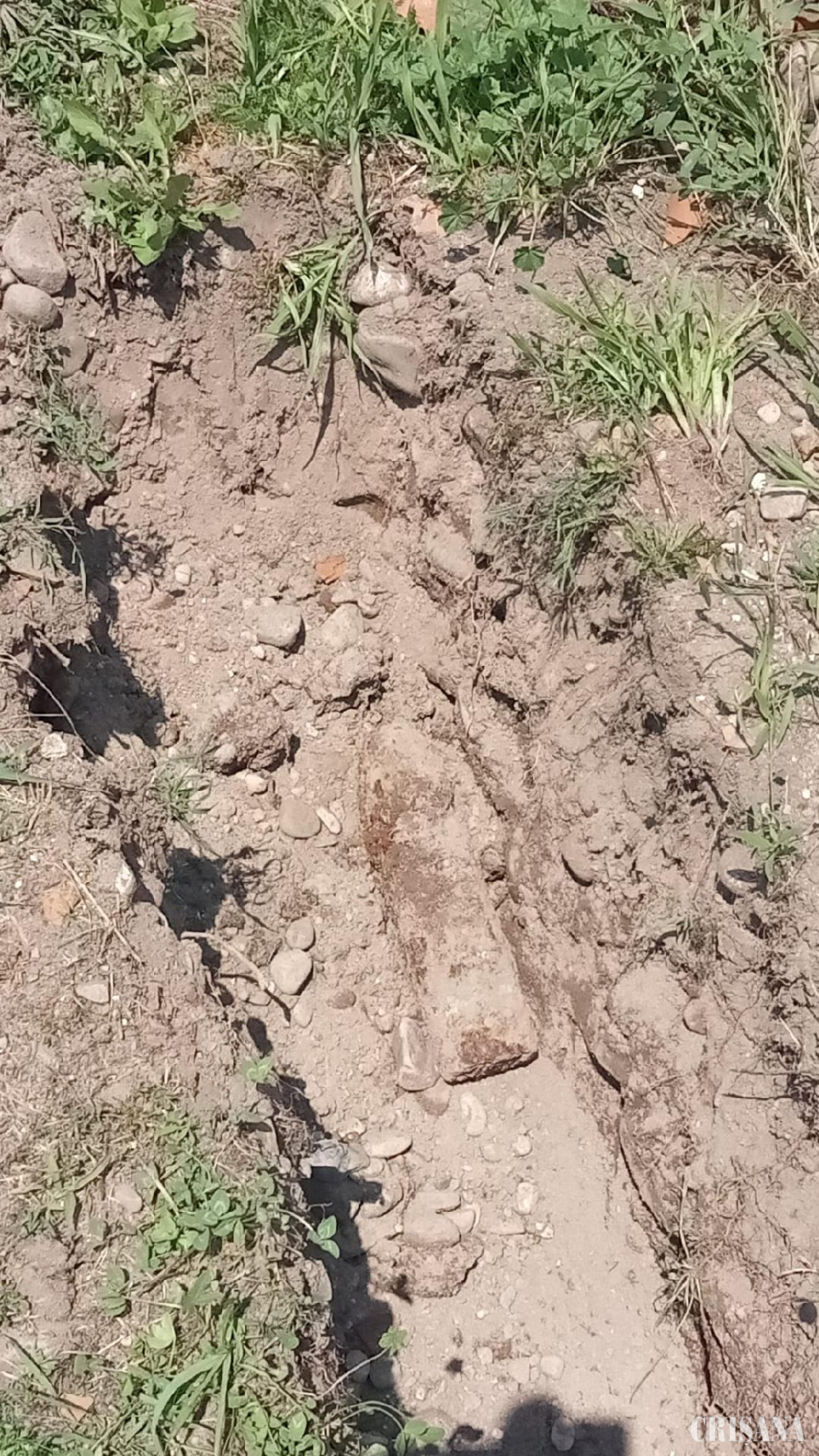 Un localnic care săpa o fundaţie a găsit un proiectil în curtea casei - Muniţie găsită în Poenii de Sus