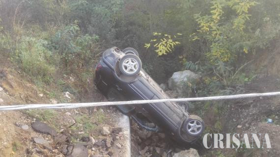 Un accident spectaculos s-a produs ieri dimineaţă pe Drumul Naţional 76, la ieşirea din localitatea bihoreană Ceica. Şoferul unui autoturism a ajuns cu maşina într-o groapă săpată în şosea. Se pare că, din cauza ceţii, şoferul ar fi observat prea târziu indicatoarele care anunţau că se apropie de un crater.