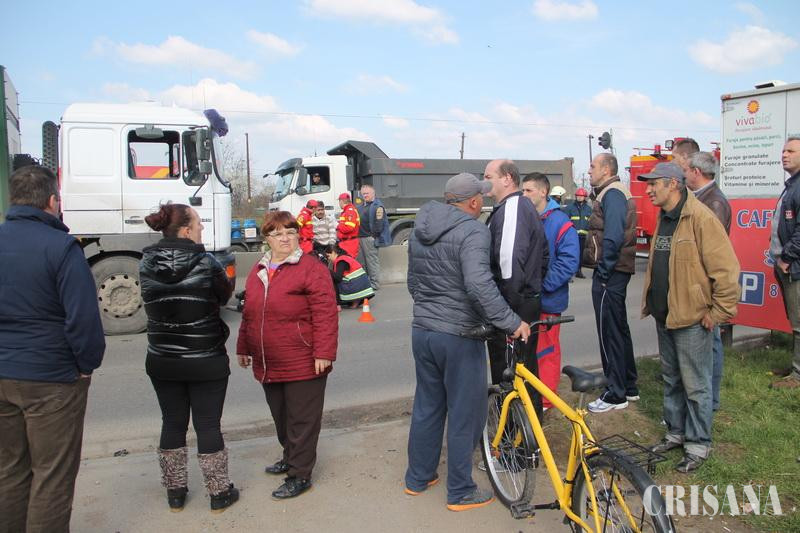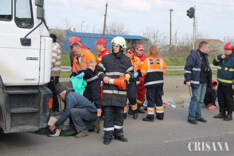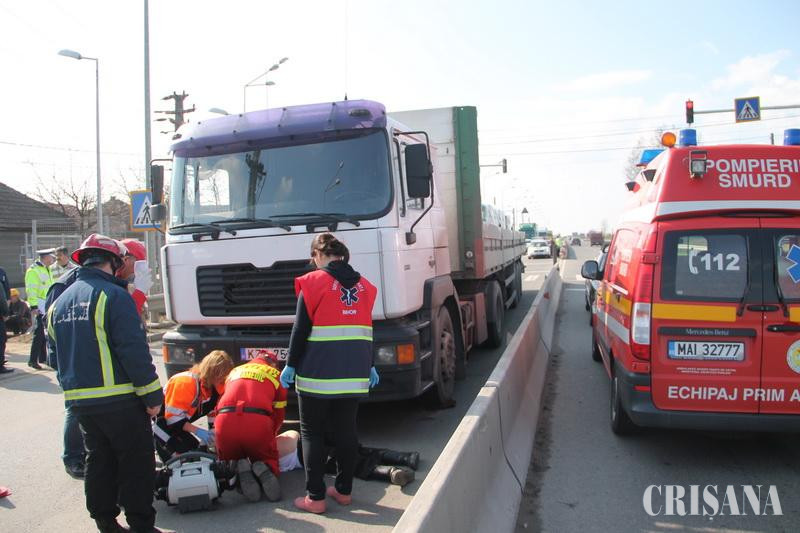 Şoferul autocamionului, Tarsoly Zoltan din Biharkeresztes, a oprit abia la 20 de metri după impact, târând corpul femeii pe carosabil. Potrivit martorilor şi poliţiştilor, accidentul s-a produs pentru că şoferul nu a respectat semnificaţia culorii roşii a semaforului electric. Tarsoly Zoltan a susţinut însă că la momentul accidentului nu era nimeni pe stradă şi că avea culoarea verde la semafor. Conform acestuia, femeia a ezitat la început să traverseze, a făcut un pas şi apoi a dat să se întoarcă, ceea ce l-a făcut să nu frâneze. În momentul impactului, a tras stânga de volan, dar nu a mai avut ce face. Un echipaj de la descarcerare s-a deplasat la faţa locului pentru a scoate femeia de sub TIR. Localnicii prezenţi la faţa locului erau nemulţumiţi şi de faptul că, deşi zona este recunoscută ca una cu probleme în care au loc numeroase accidente, autorităţile nu fac nimic pentru a le stopa. Poliţiştii continuă cercetările în cauză, pentru stabilirea cu exactitate a împrejurărilor şi cauzelor producerii accidentului rutier, urmând ca şoferul să fie cercetat pentru ucidere din culpă. Tot ieri, în aceeaşi zonă, pe Podul Densuşianu, a avut loc un alt accident grav în care a fost implicată o maşină care transporta butelii şi un TIR. Conform poliţiştilor, vina i-ar aparţine şoferului TIR-ului care nu ar fi respectat indicatoarele, intrând pe contrasens unde a lovit frontal autoutilitara cu butelii. Şoferul acesteia, un tânăr de 22 de ani, a fost scos dintre fiarele contorsionate ale maşinii de un echipaj de descarcerare al SMURD. Conform medicilor de la Spitalul Judeţean, victima are ambele picioare fracturate, dar este în stare stabilă.