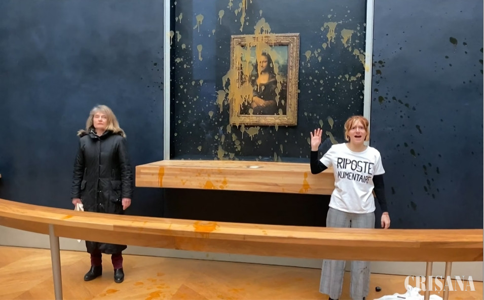 Doi activişti ecologişti au stropit cu supă geamul blindat care protejează tabloul „Mona Lisa" de la Muzeul Luvru din Paris, duminică dimineaţă, justificându-şi acţiunea prin dorinţa lor de a promova în special „dreptul la o alimentaţie sigură şi durabilă", potrivit unui jurnalist de la AFP.