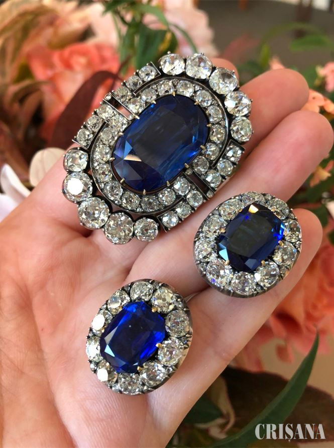 Datând din 1900, semi-setul include un safir oval de Ceylon de 26,80 carate.