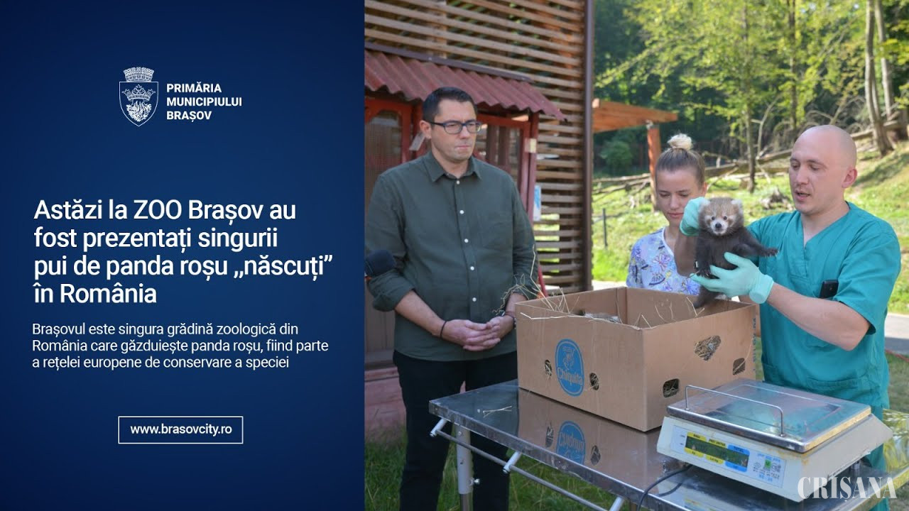 Singurii doi urși panda roșii din România, care trăiesc la Grădina Zoologică din Brașov, au devenit părinți. Puii au aproximativ opt săptămâni și au trecut cu bine de perioada critică, iar acum se dezvoltă normal.