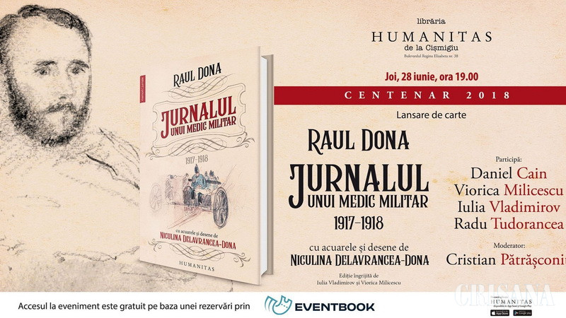 Jurnalul doctorului Raul Dona, scris între ianuarie 1917 şi noiembrie 1918, a fost lansat, cu titlul „Jurnalul unui medic militar, 1917-1918", ieri seară la librăria Humanitas de la Cișmigiu din București.