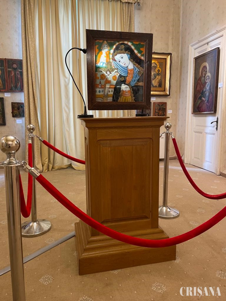 Icoana pe glajă „Maica Domnului Îndurerată”, semnată de părintele Arsenie Boca, a fost adjudecată, în cadrul Licitației de Artă Sacră, pentru 17.000 de euro, fiind cea mai disputată piesă a evenimentului.