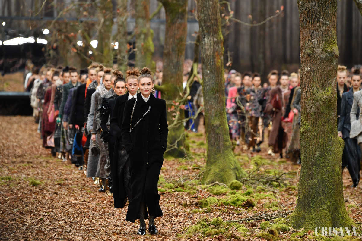 Cât mai aproape de natură: într-o pădure de toamnă şi-a prezentat marţi Karl Lagerfeld, în ultima zi a Săptămânii Modei de la Paris, colecţia Chanel în care s-au făcut remarcate botinele, eşarfele şi paltoanele maxi, predestinate acestui sezon ploios. A fost criticat, însă, de asociațiile pentru apărarea mediului din Franța pentru că ar fi folosit copaci seculari pentru decoruri.