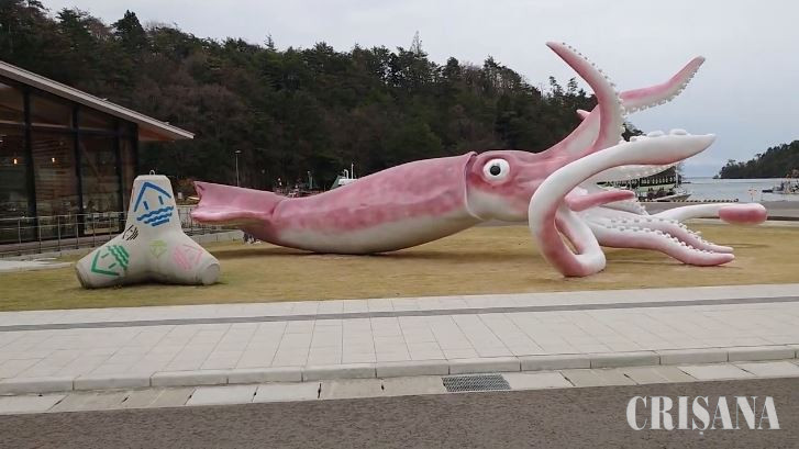 Oraşul Noto din Japonia a construit o statuie uriaşă reprezentând un cefalopod - Calamarul roz încinge spiritele