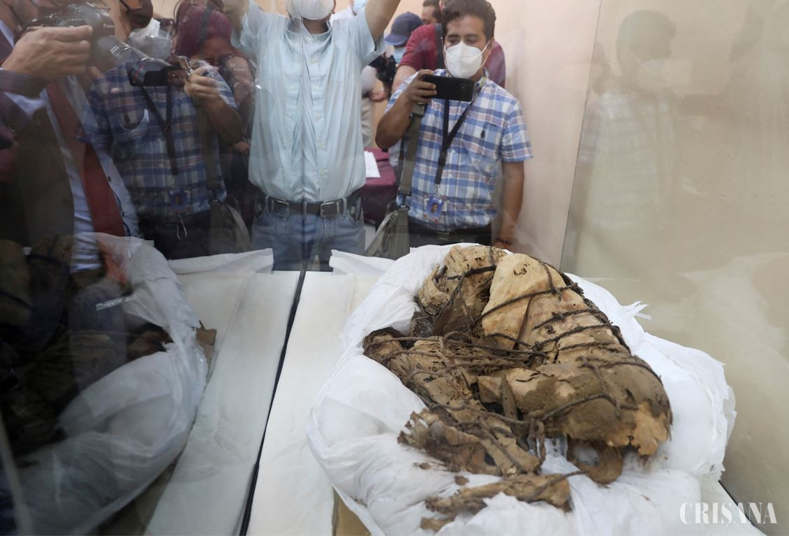 Rămăşiţele au fost descoperite în exteriorul unui mormânt subteran, unde echipa de la Universitatea San Marcos din Peru a dezgropat în noiembrie o mumie antică, despre care se crede că ar fi fost de rang nobiliar, legată cu funii, în poziţie fetală.