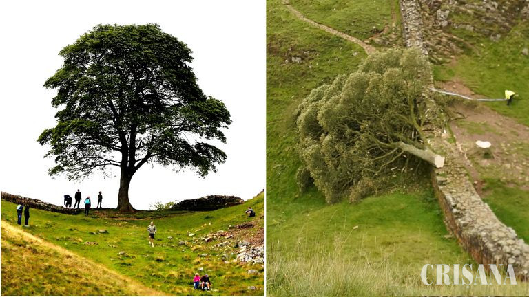Copacul se afla chiar lângă celebra fortificație Zidul lui Hadrian. Peste noapte, acesta a fost pus la pământ, iar polițiștii investighează „o tăiere deliberată” într-un act de vandalism, potrivit BBC.